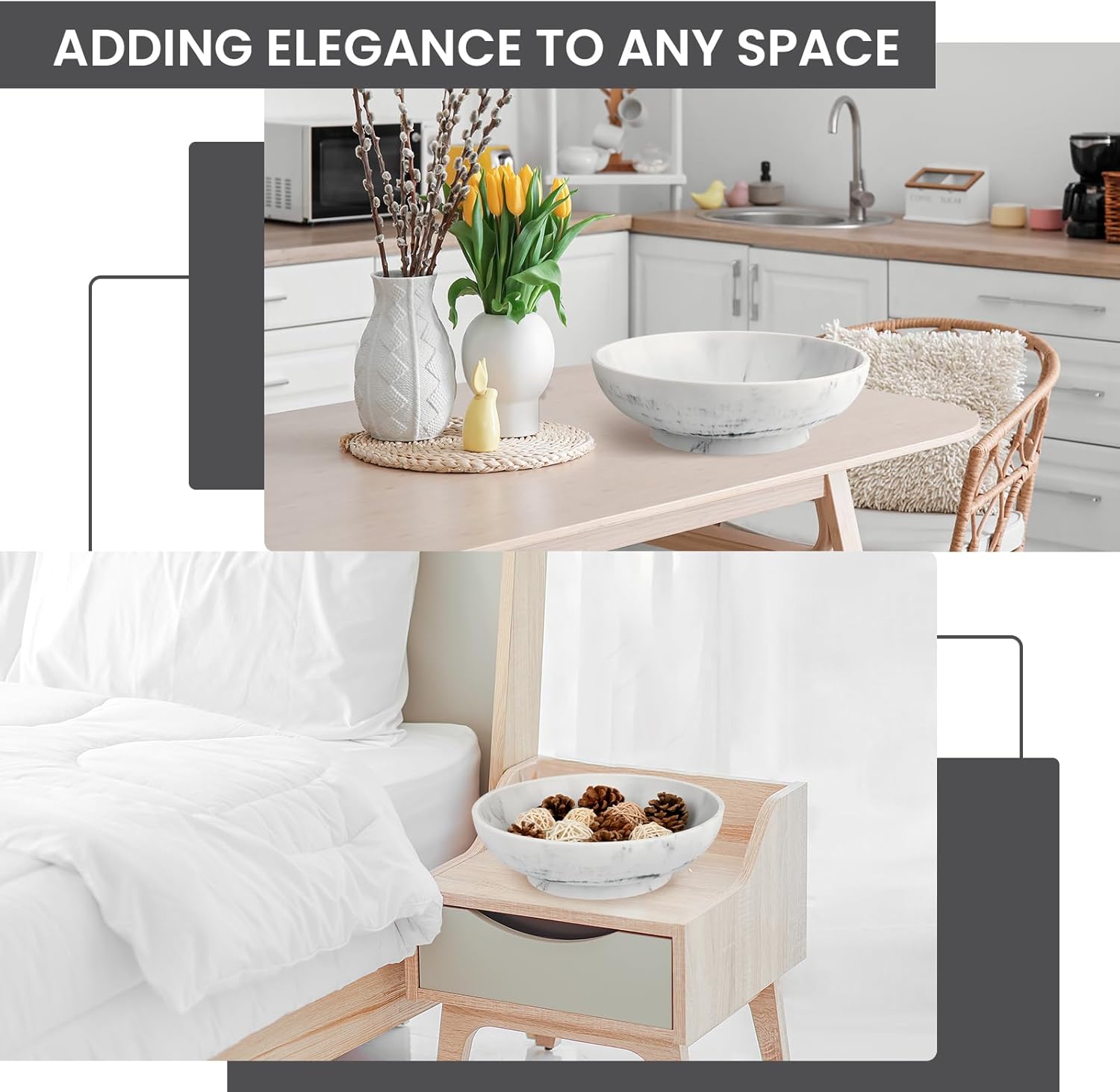 - Modern Home Decor:The centerpiece bowl is ideal for home decor,modern kitchen decor,entryway table,living room,dining area,coffee table,etc,adds an elegance as a decor bowl.