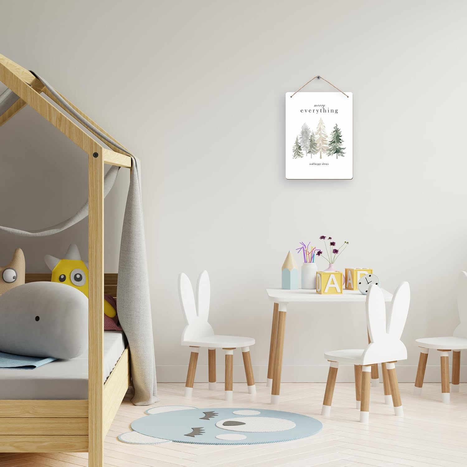 Pine Tree Winter Hanging Wooden Signs 10x8, Welcome Winter Signs, Winter Tree Wall Decor, Merry Everything and Happy Always Winter Home Room Office Hanging Wall Decor