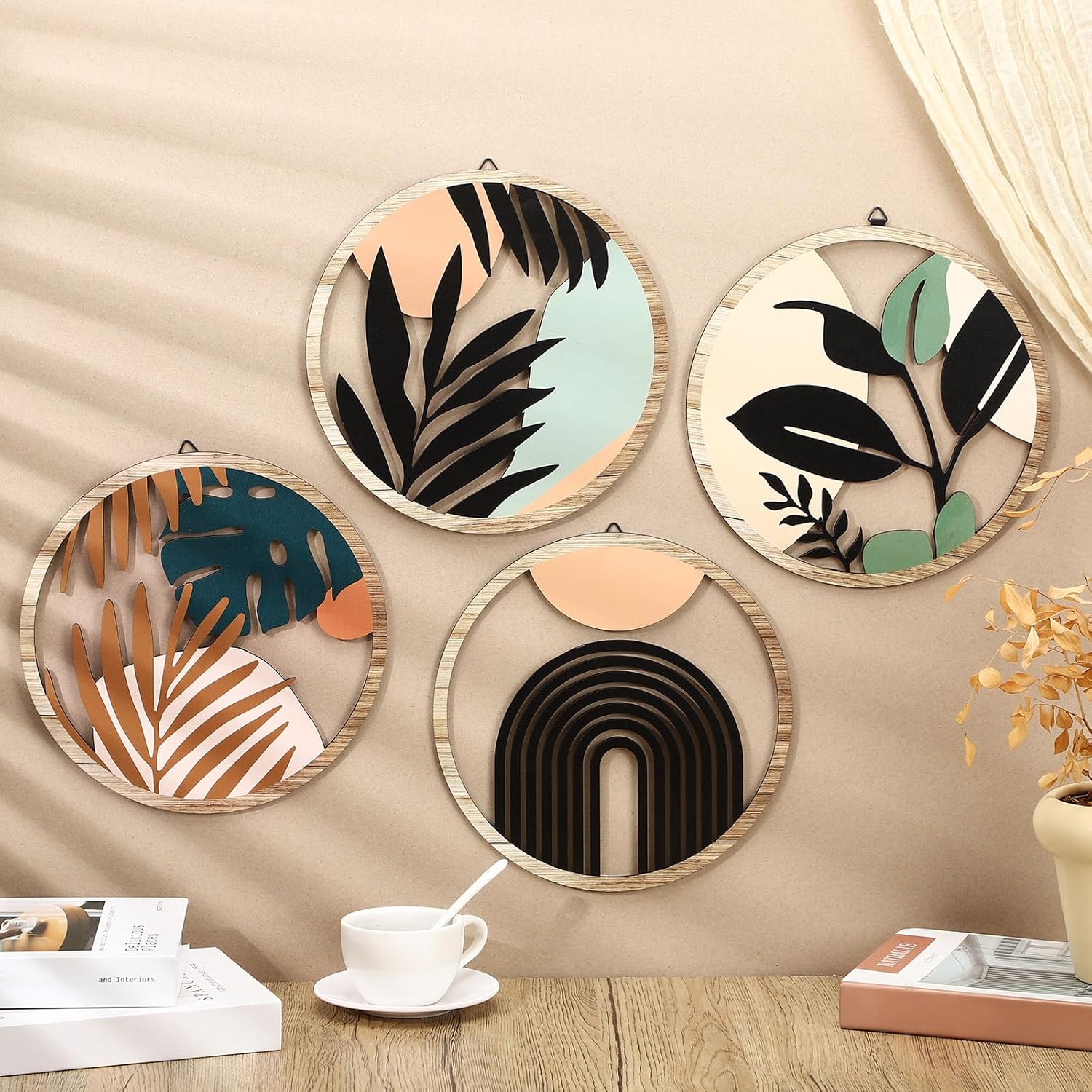 - Package Includes: you will receive 4 boho wood decorations for outdoor indoor, which you can utilize to create different combinations of shapes to inspire you and give your home an artistic atmosphere