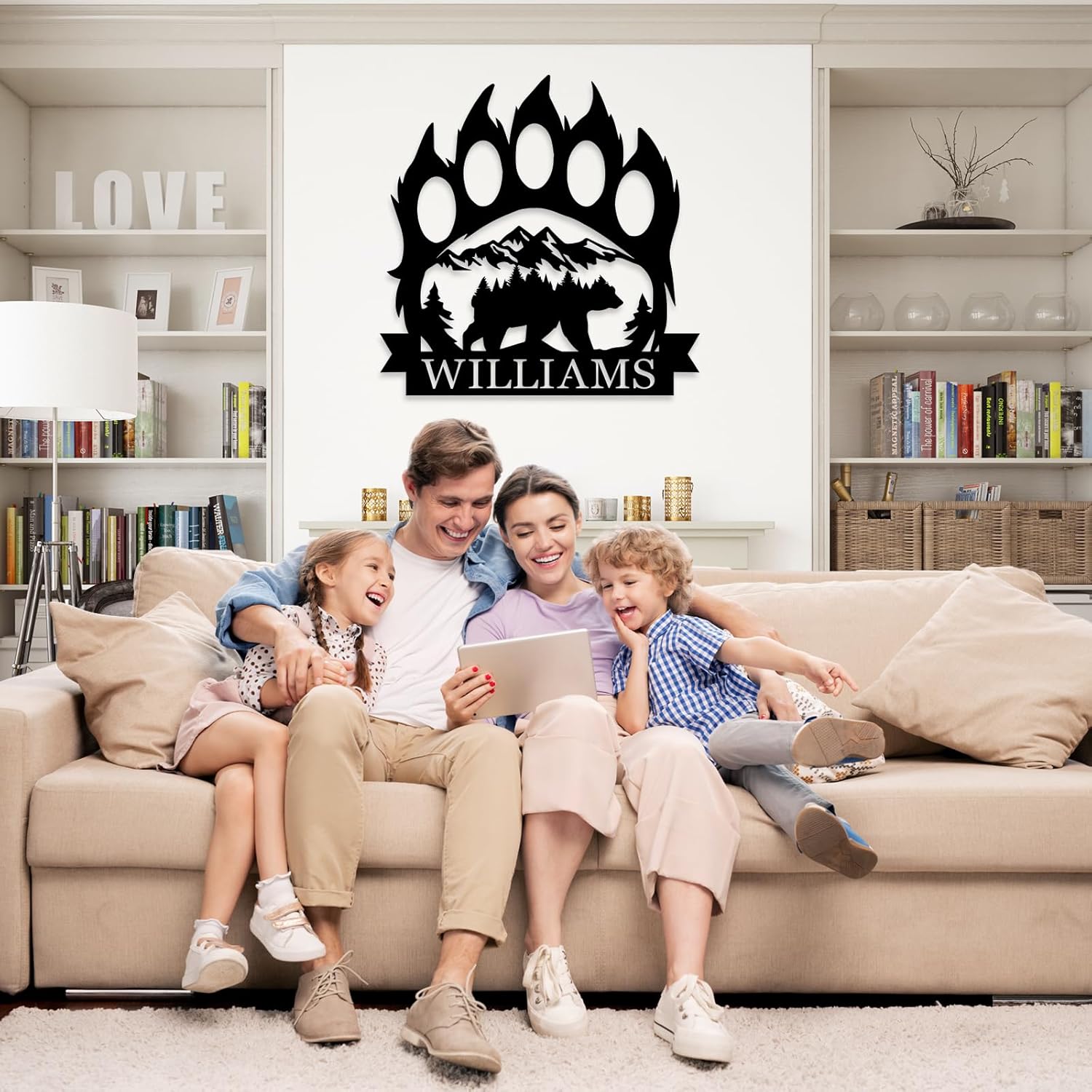 Personalized Bear Paw Metal Wall Decor, Rustic Forest Bear Wilderness Sign, Forest for Living Room Indoor Decor, Rustic Cabin Hunting Bear Paw Signs