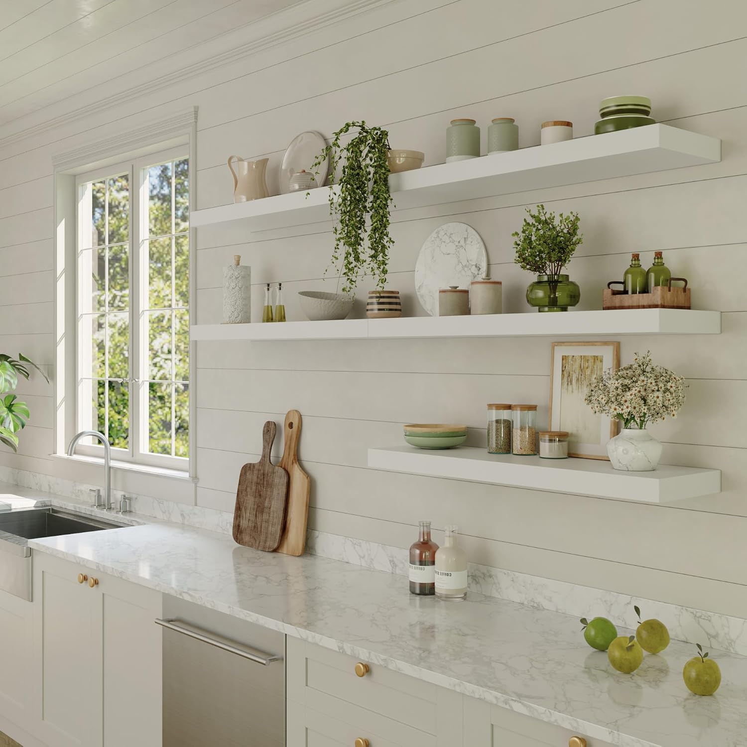 - Wide Range of Scenarios - The floating wall shelf can be applied to a variety of scenarios, use it in the kitchen to hold kitchenware and cutlery, for your entryway to hold keys and bags, and in the bedroom or living room to hold vases and books to help and facilitate your life