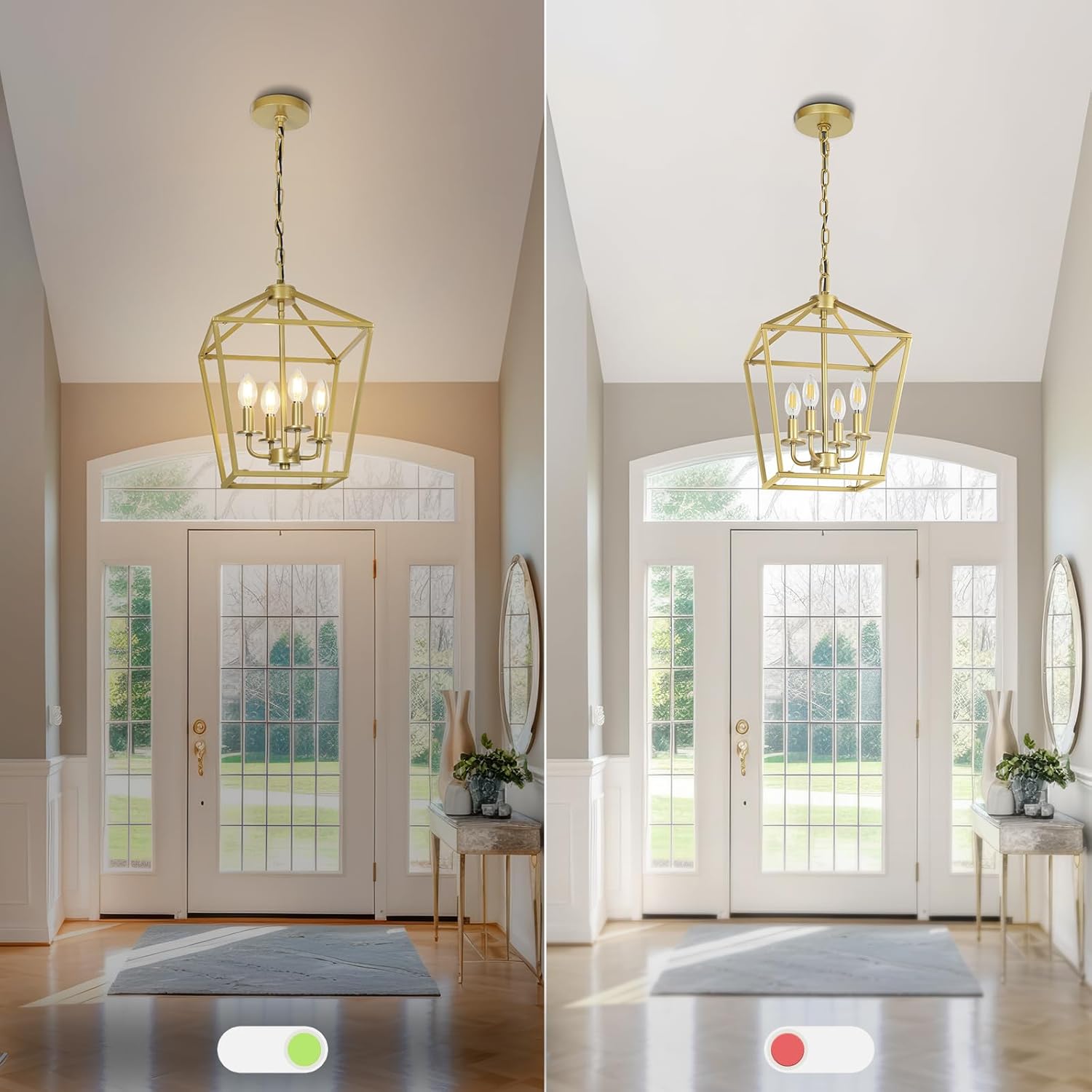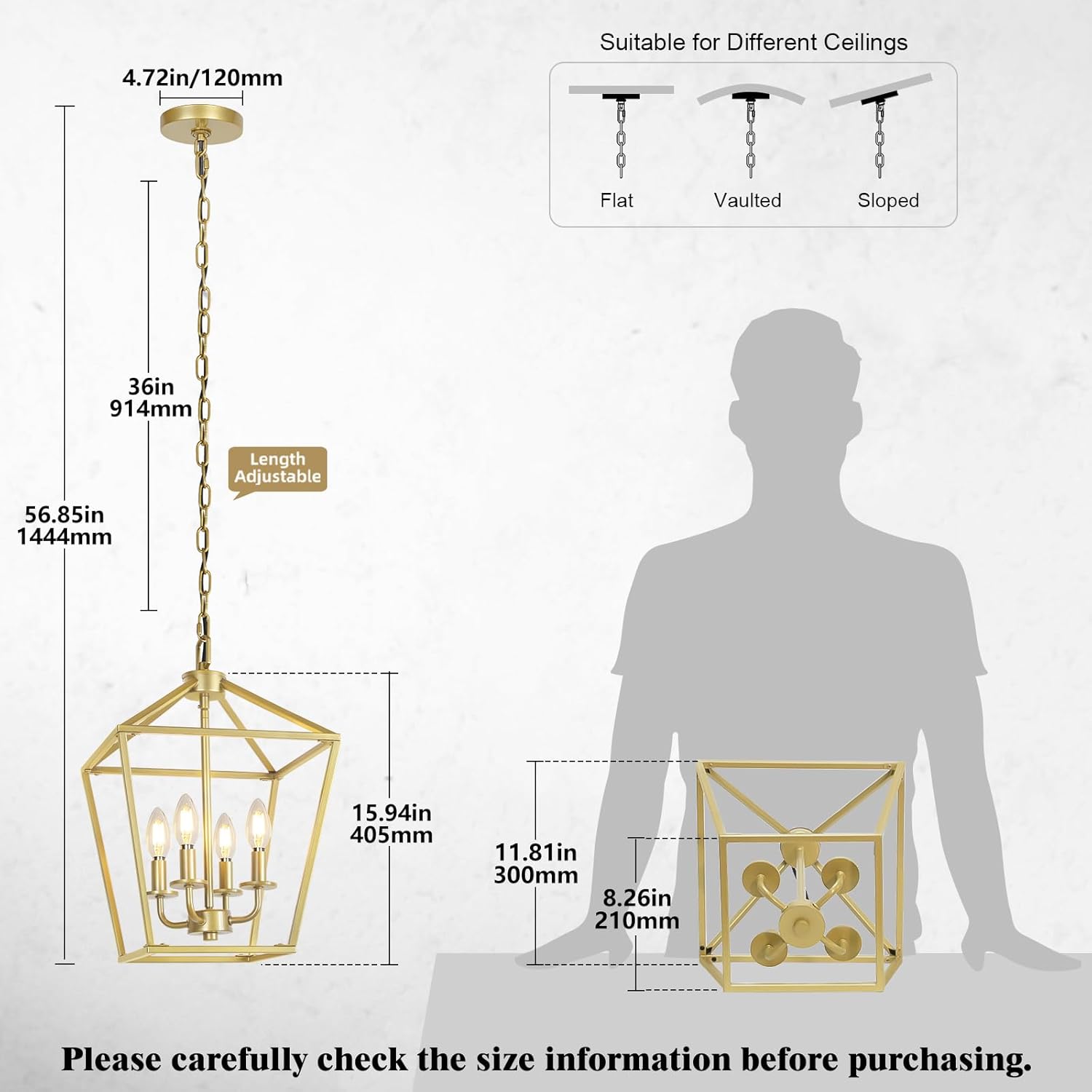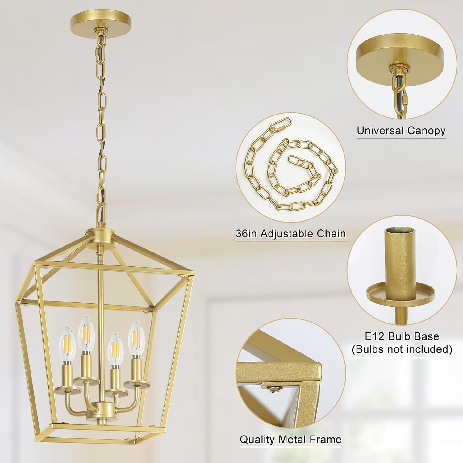 - Gold and Stylish Appearance: Featured with gold center candlestick and geometric outward appearance, the geometric lantern chandelier is a wonderful addition to add industrial touch to your home dΓ©cor. Artistic and eye-catching, it can perfectly blend in any place such as bedroom, living room, bathroom, dining room, hallway or kitchen island (indoor use only)