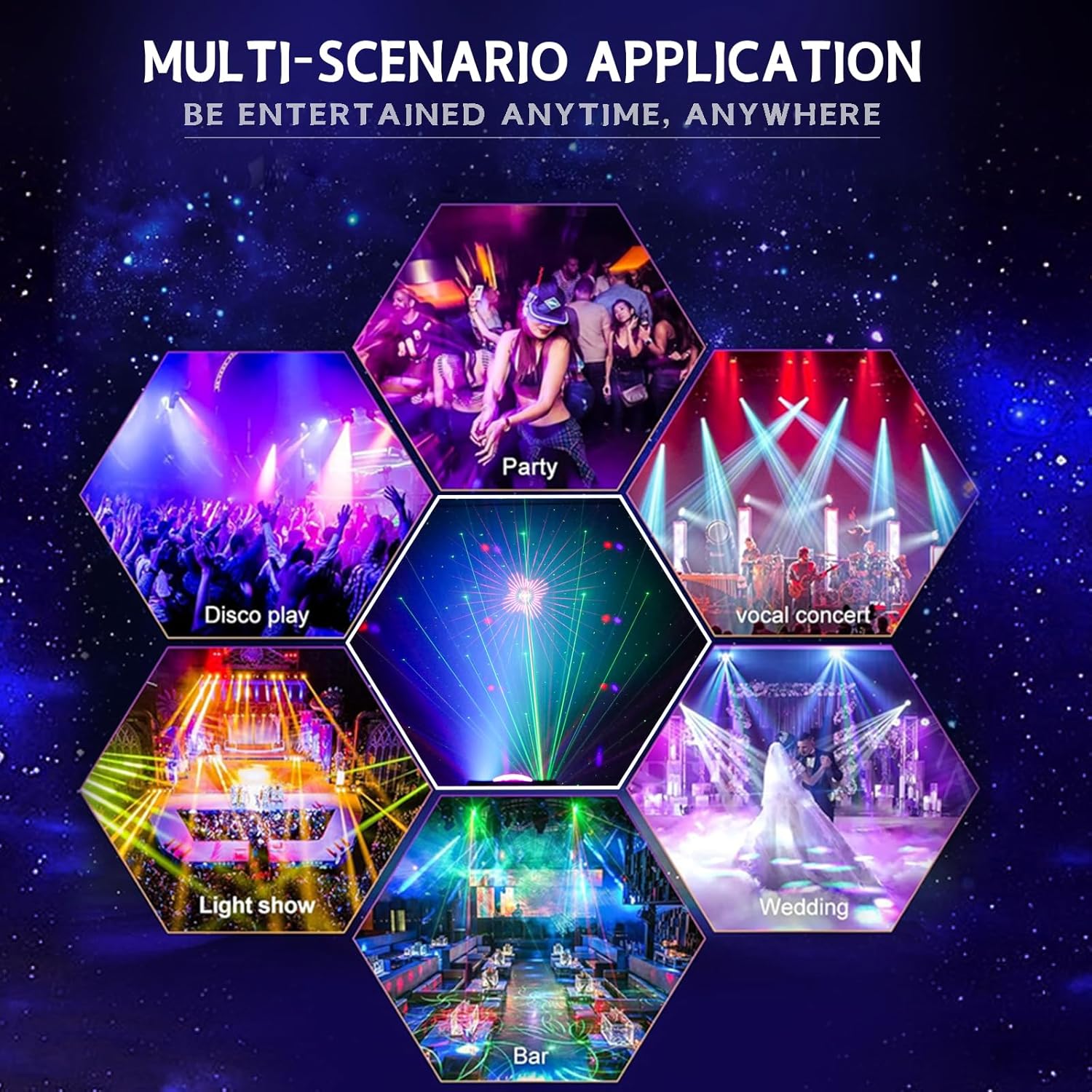 - 【Vibrant Patterns and Strobe Light】This s a wonderful party light. The light rotates and sends strobes of light and you can mix up the patterns. The patterns are in red and green but the strobe lights can be different colors. This party light is a great way to add some ambiance to any party or event. It's easy to set up and use, and it come with a variety of different light modes to choose from.