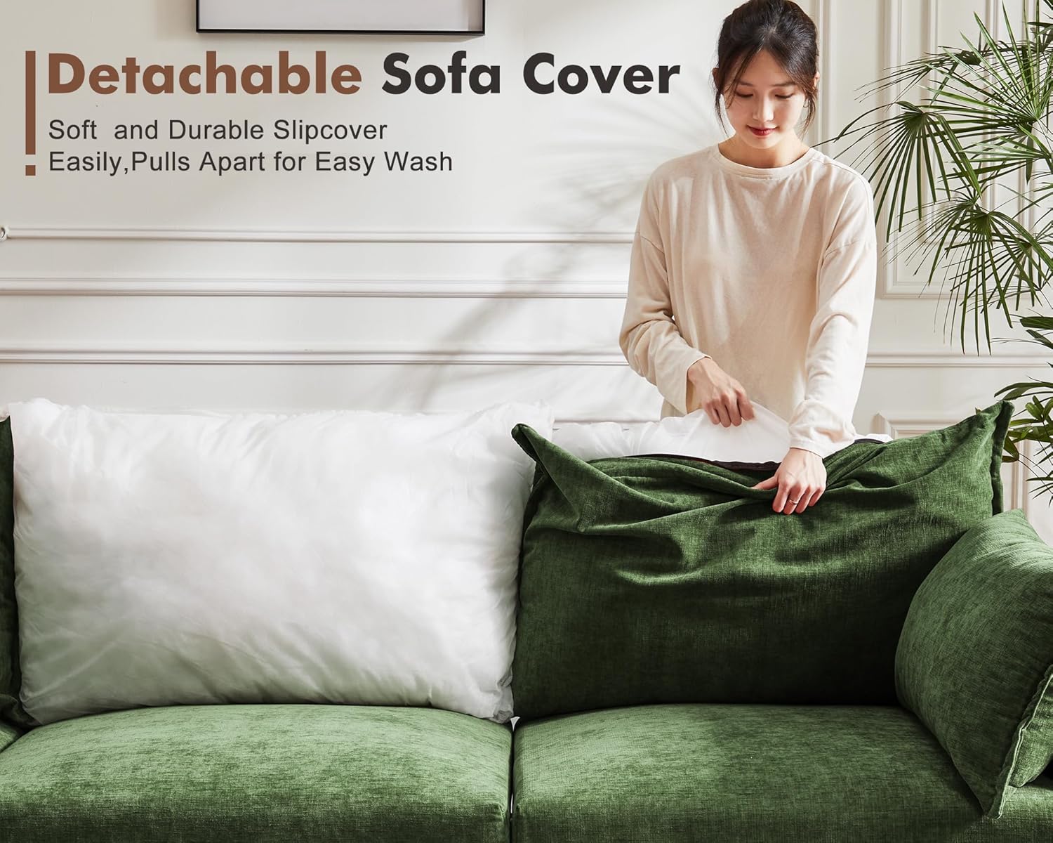 - š” Premium Chenille Fabric - The modern sofa is upholstered in premium chenille fabric that feels luxurious to the touch, offering both comfort and durability. The material is not only soft and inviting but also non-pilling and won't stain, ensuring long-lasting quality.