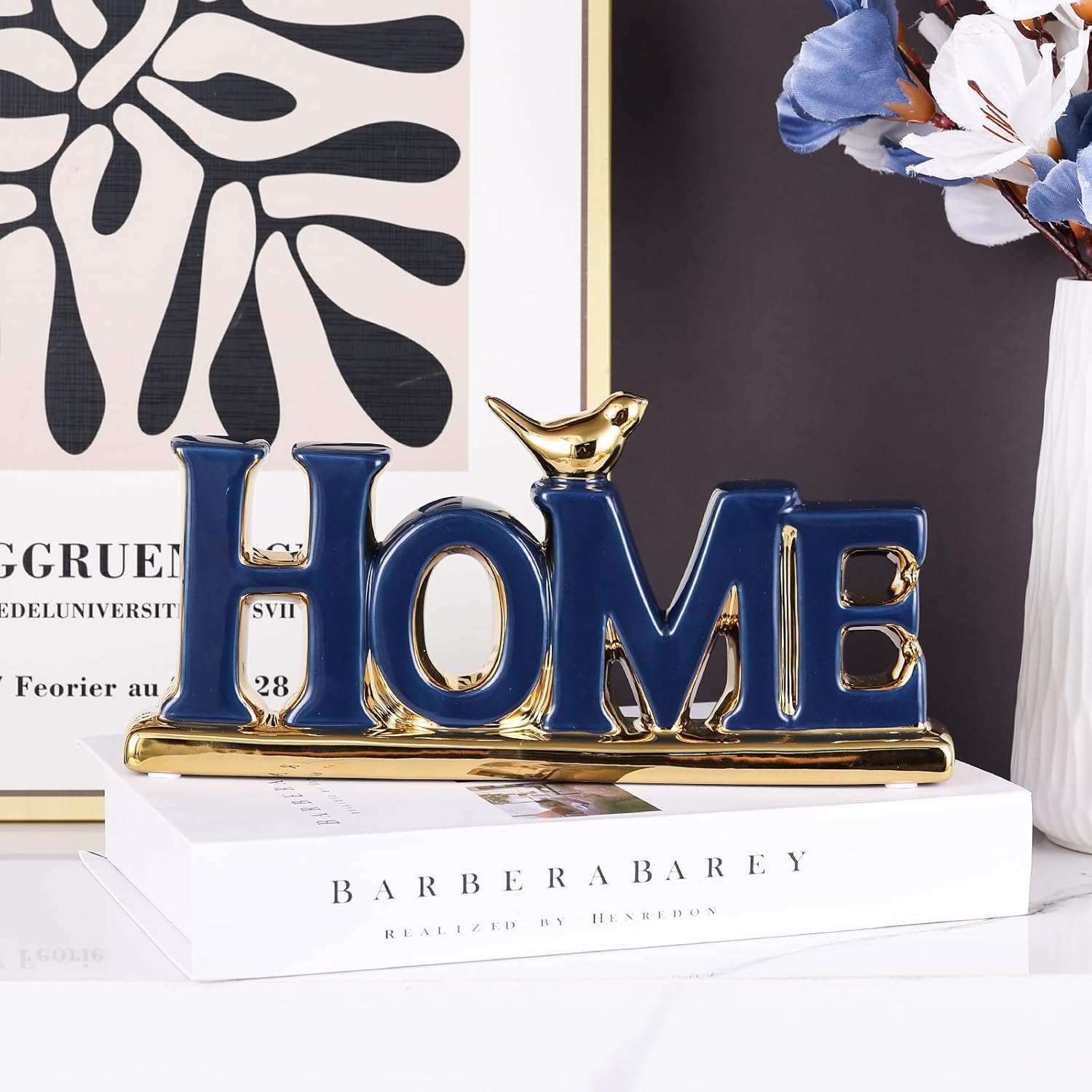 Love Sign Decoration,Blue and Gold Home Signs for Home Decor Statue,Modern Bird Sculpture Personalized Love Decor,Gold Style Figurine Decorative Ornaments for Living Room,Bedroom,Desktop