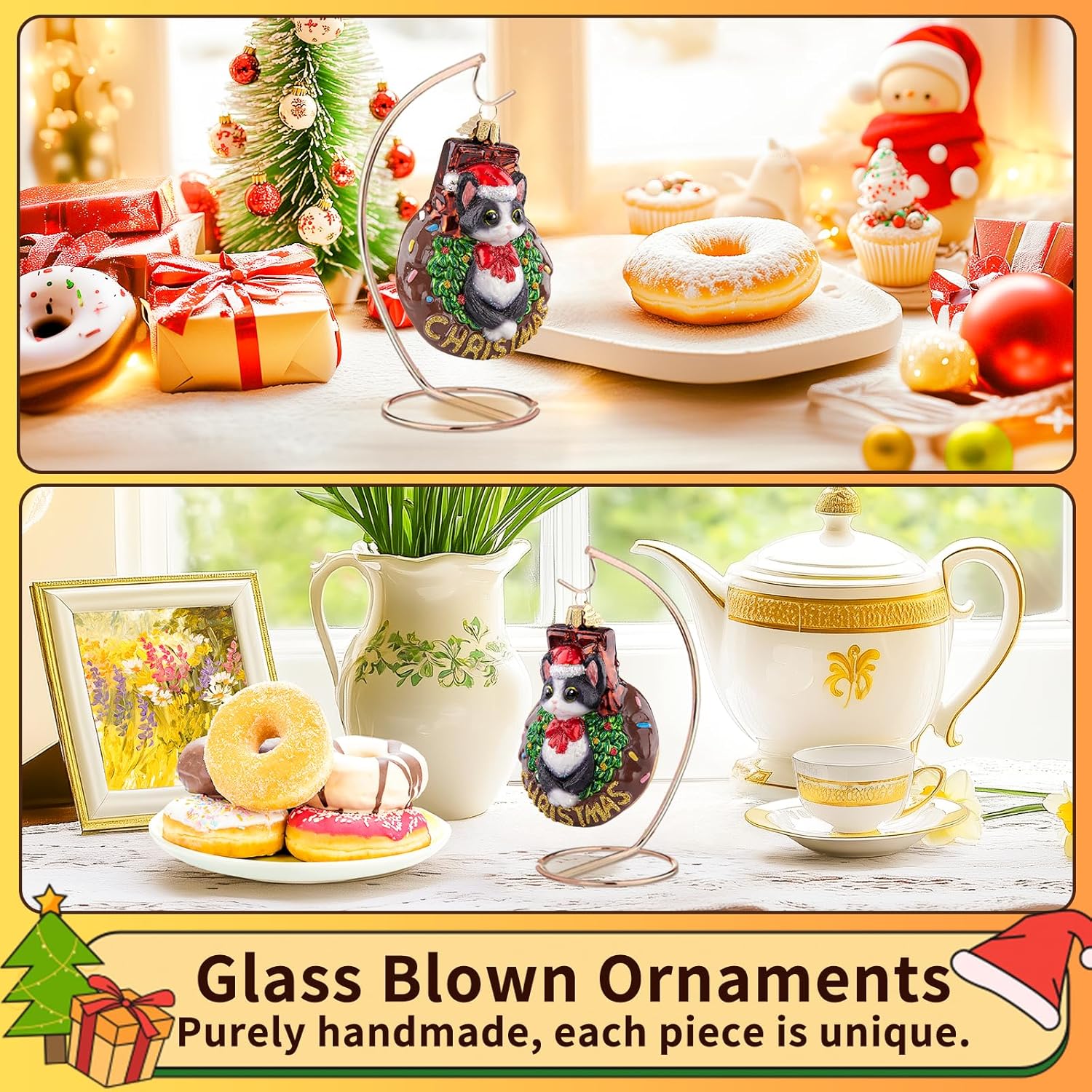 Christmas Tree Ornaments,Hand-Blown Glass Ornaments,Devon Cat Collection Hanging Ornament,Personalized Donut Ornament,Christmas Decorations for Animal Lovers Holiday Party Home Gifts