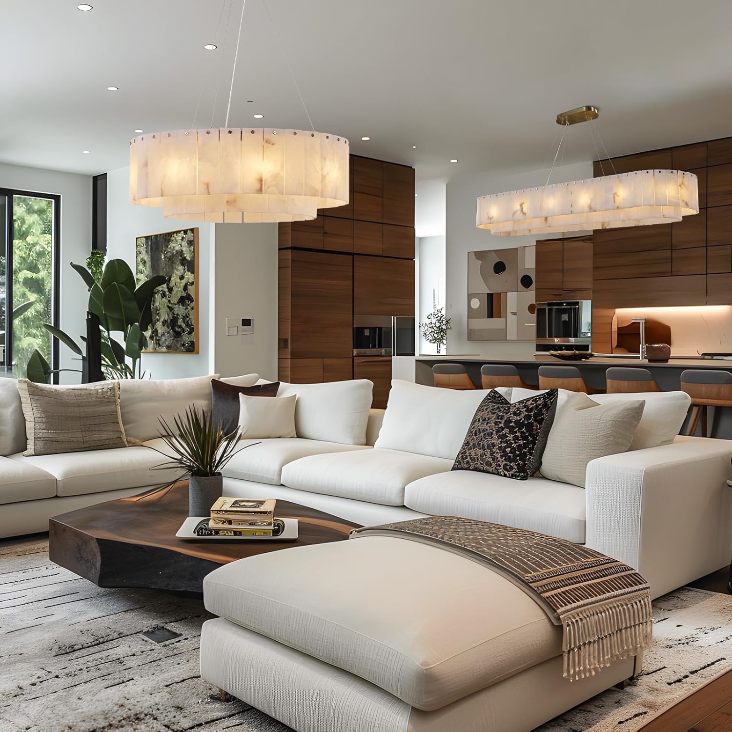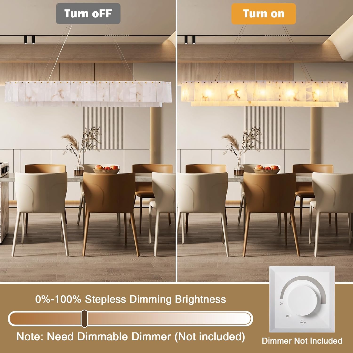 - 【Natural Alabaster and Unique Texture】Our dining room chandelier is made of Spanish alabaster, a natural stone solidified by volcanic lava over millions of years. Each piece is carefully selected and hand-polished. Due to differences in natural materials and craftsmanship, no two pieces are exactly the same. The textures presented vary in depth or brightness, adding a unique beauty.