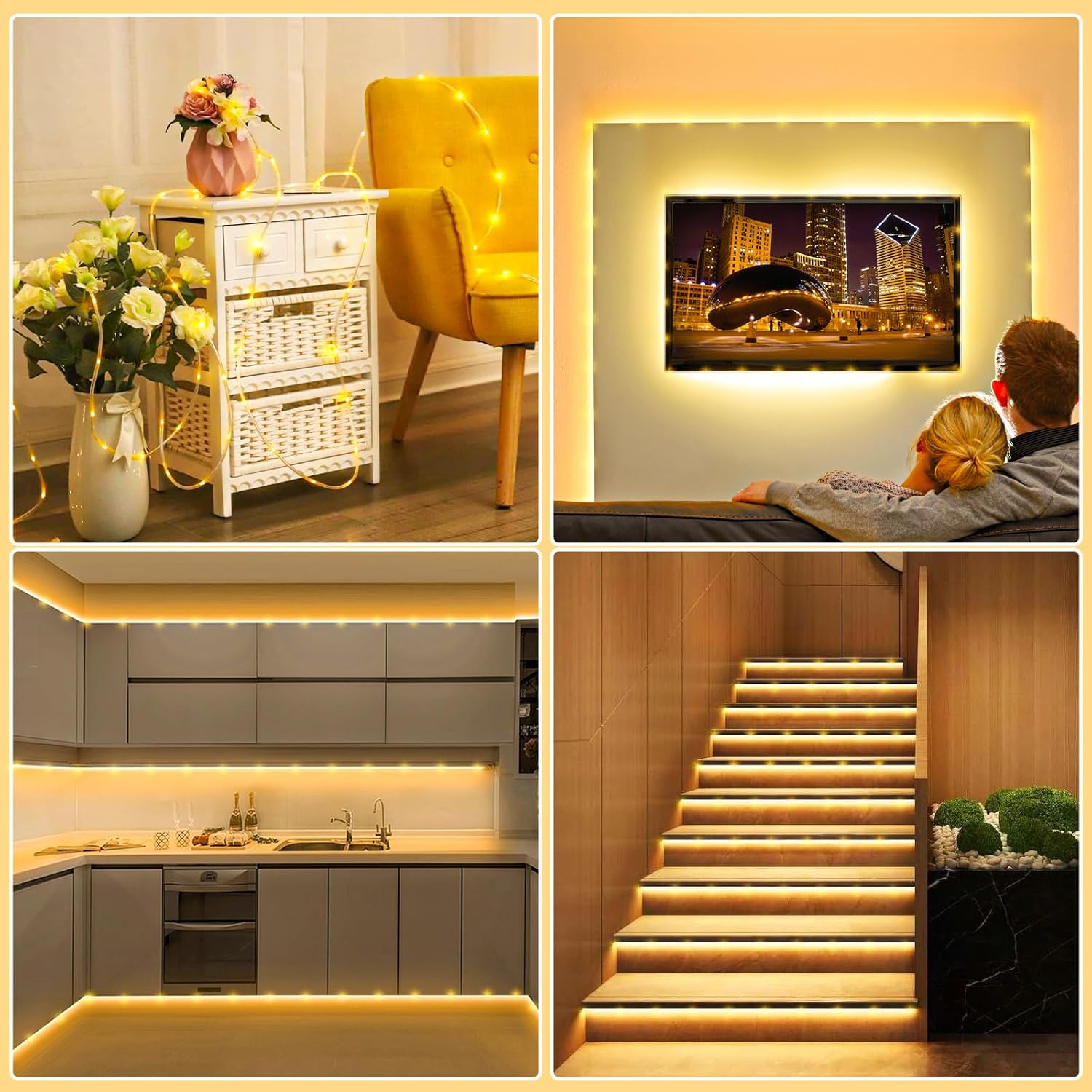 - Connectable LED Rope Lights: Our upgraded rope lights feature has 100ft lighting length, 6.6ft lead wire, total 106.6ft length. And the spacing between each LED bead is 4 inches, the light is bright but not harsh. The rope lights indoor can be connected end to end for up to 4 sets (maximum length 328ft) to illuminate your home and create a warm and romantic atmosphere!