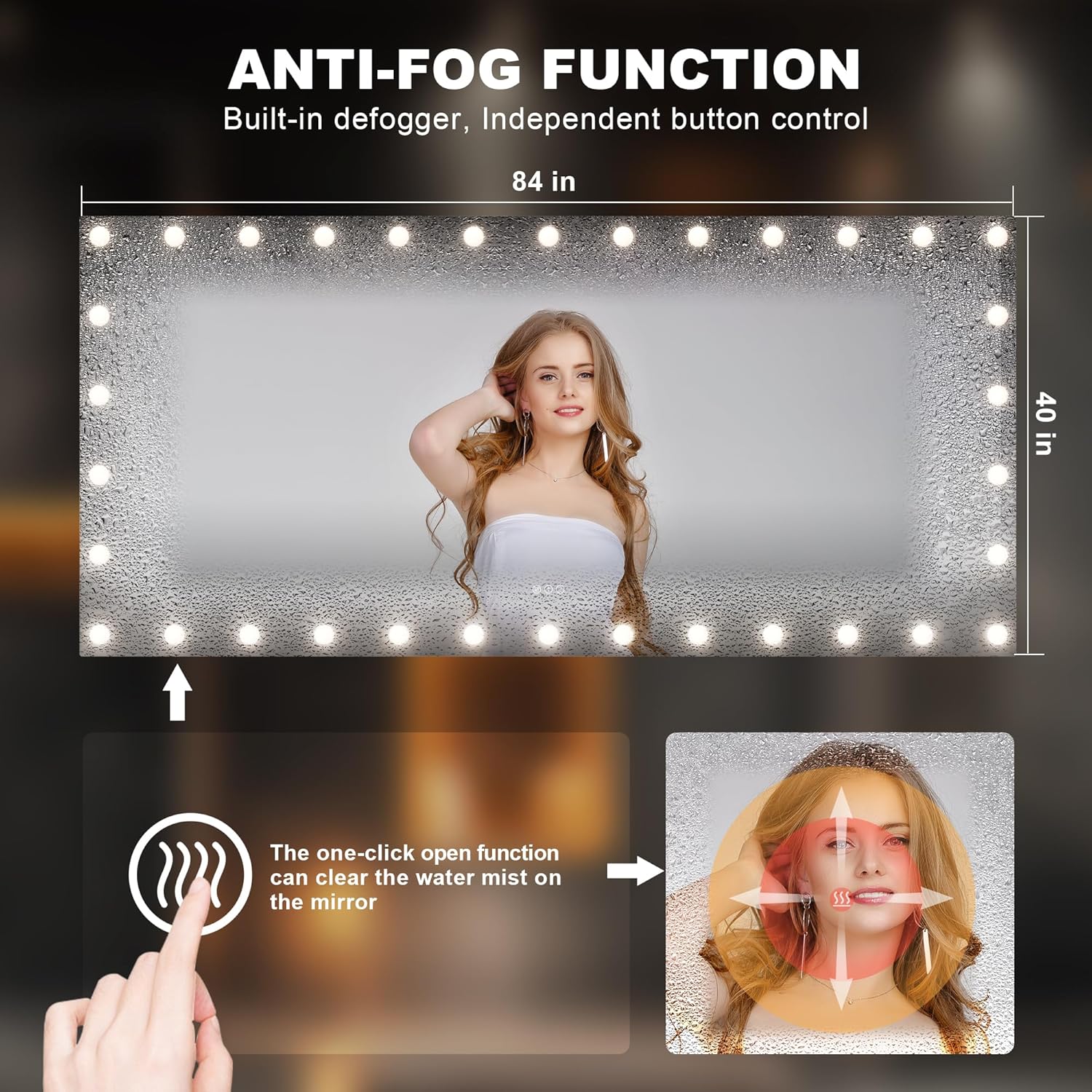 Hasipu LED Bathroom Mirror with Lights, 84" x 40" Hollywood Wall-Mounted Bathroom Mirror with 34 Dimmable Bulbs, 3 Colors Modes, Touch Control, Anti-Fog, Memory Function, Shatter-Proof, ETL Listed