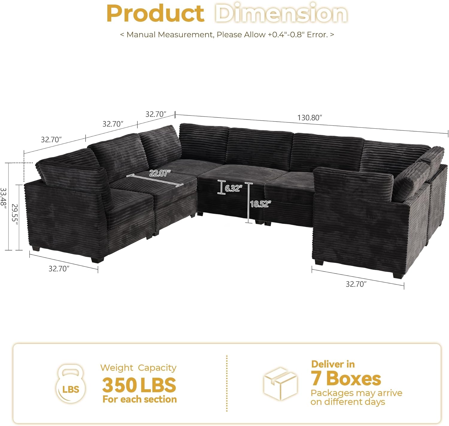 HOOOWOOO Modular Sectional Sofa,7 Pieces Sectional Couches for Living Room,131X98 U Shaped Cloud Couch Set(Black Velvet Corduroy)