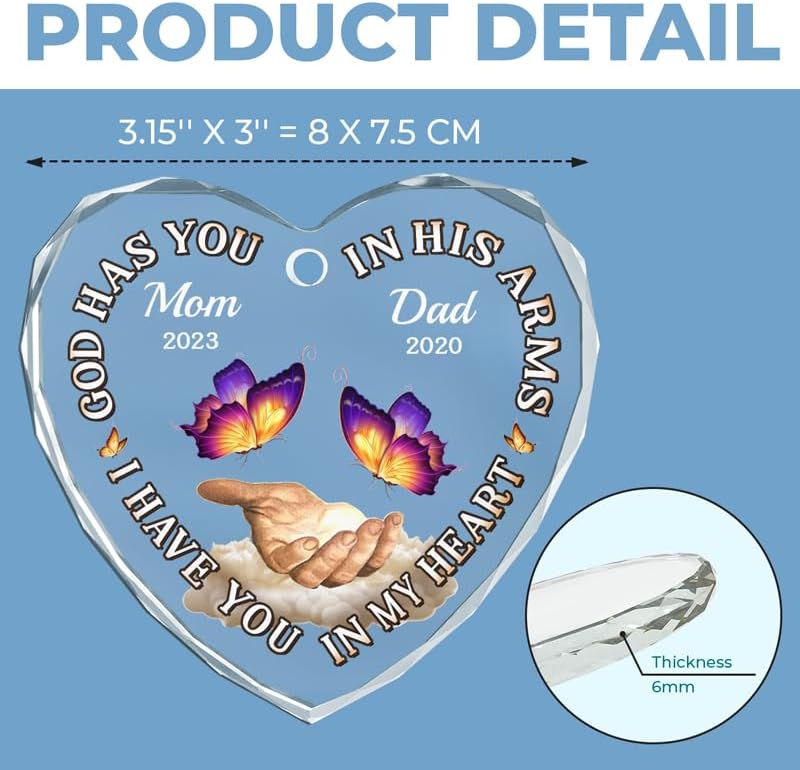- š Memorial Christmas Ornament: The ornament is crafted from 100% clear glass with beveled edges, measuring 3.15x3 in (8x7.5 cm) in size and 6mm in thickness. It features a one-sided design. You can choose what is printed on these personalized Christmas ornaments! This ornament will be the best Christmas gift for your family members, memorial gifts for loss of loved one, gifts for grieving friends, thanksgiving ornaments for tree.
