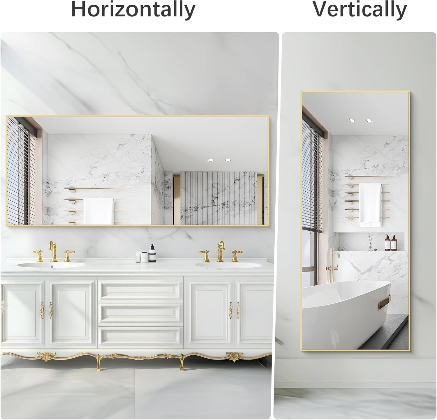 - DURABLE FRAME: Bathroom wall mirror frame is aluminum alloy frame,with good moisture resistance,anti-corrosion and sturdy. Gold classic color will provide your room with unique decoration to help you modernize room.