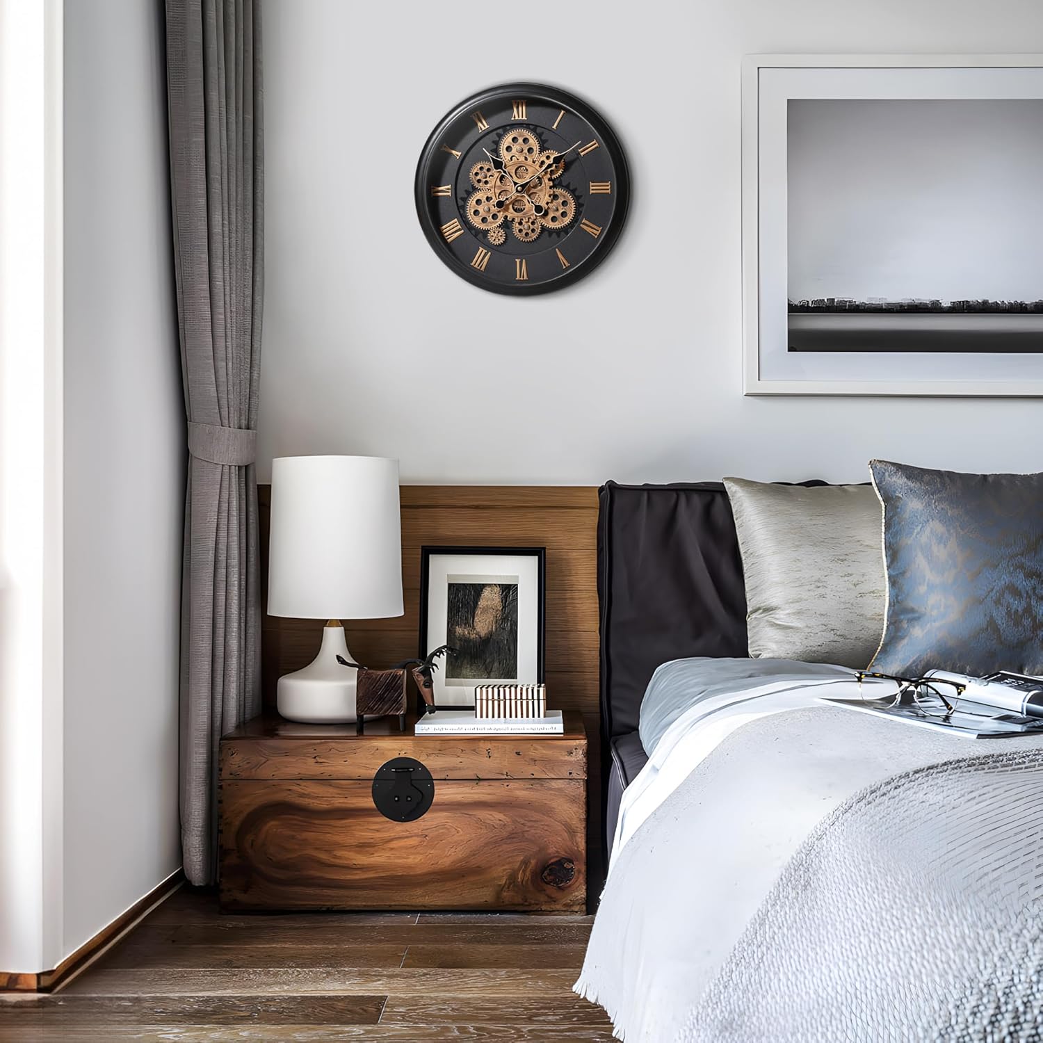 - [Silent Wall Clock ] Precision and Quiet Movement,based on high-torque, quality quartz movement, it function as beautiful wall decor pieces besides telling time, and bring both style and purpose to any room. Sit and watch the time fly by with this stunning gear clock.