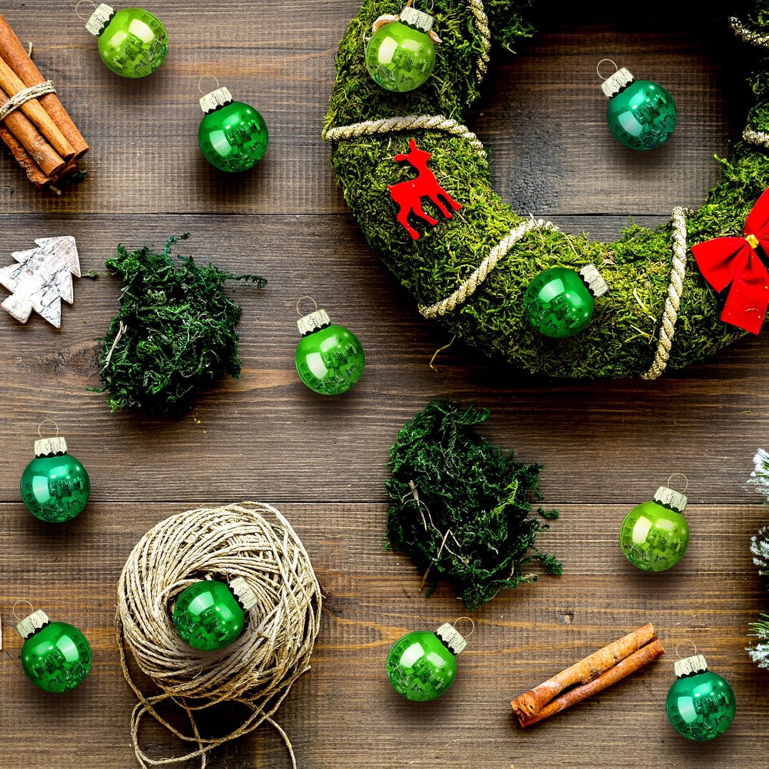 Tioncy 32 Pcs 1 Inch Mini Glass Christmas Ornaments Balls Shiny Christmas Balls Tiny Tree Hanging Decoration Small Colorful Ball Pendant for Xmas Party Supplies(Green Series)