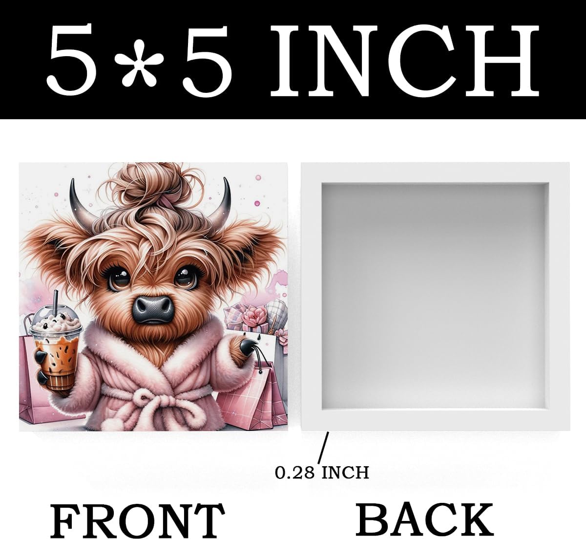 Highland Cow Winter Decor, Highland Cow Gifts for women, Highland Cow Baby Decor, Highland Cow Nursery Decor, Wooden Box Decor Sign for Home Farmhouse Office Living Room Table Shelf Tiered