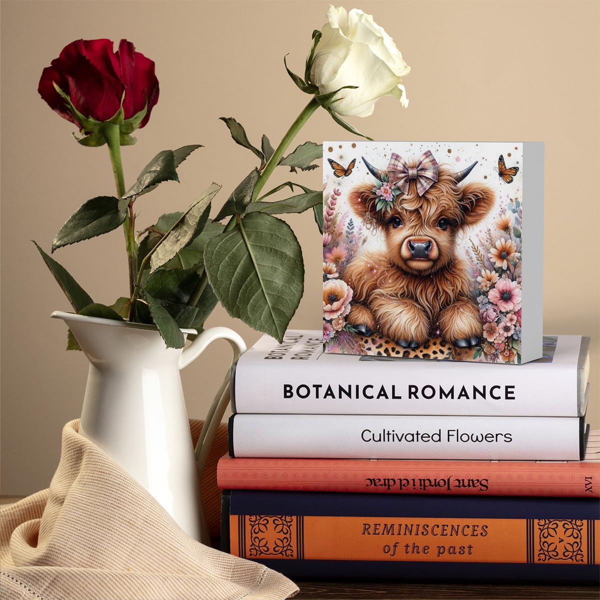 Highland Cow Baby Decor, Highland Cow Decor, Highland Cow Gifts for women, Highland Cow Nursery Decor, Gifts for Girls, Wooden Box Decor Sign for Home Farmhouse Office Living Room Table Shelf Tiered