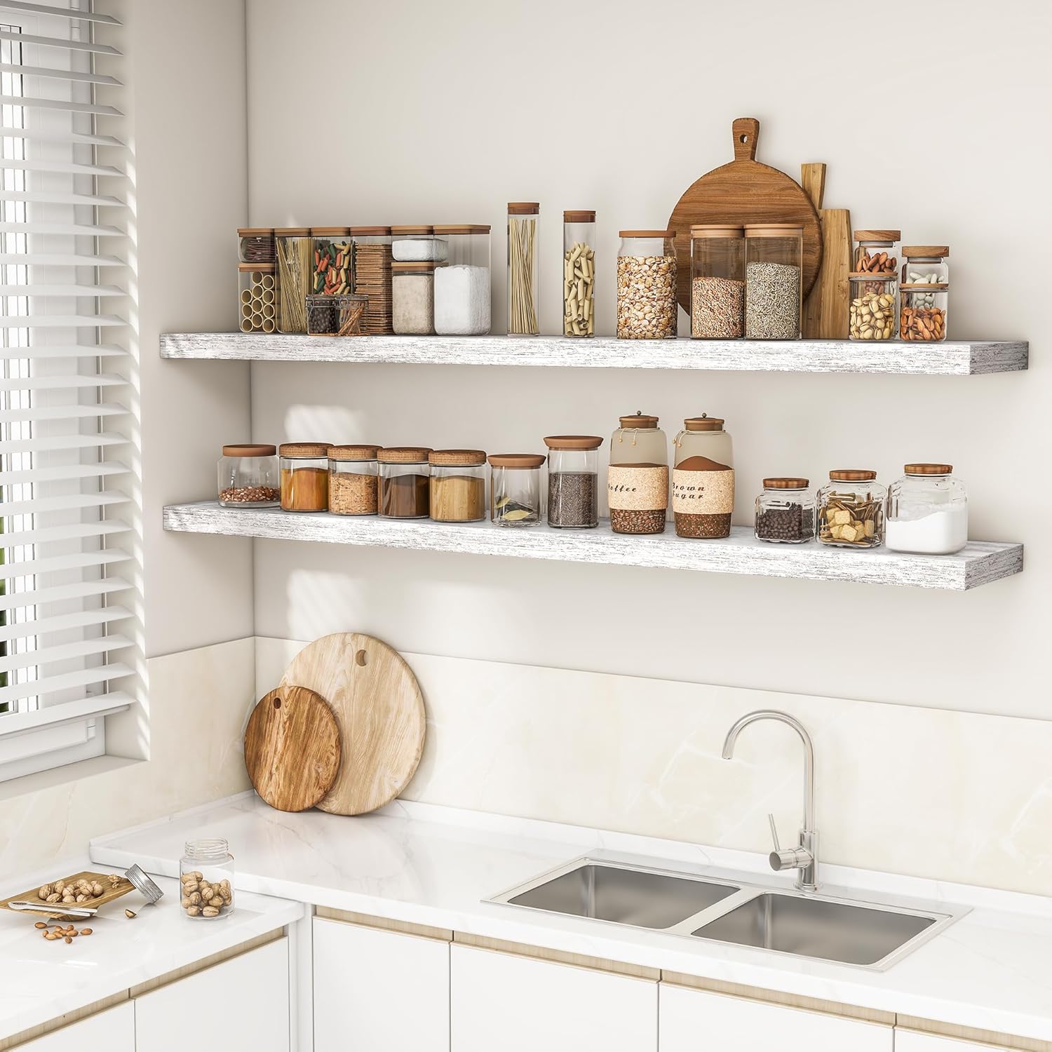 RICHFOCUS 72Inch Floating Shelves for Wall 2 Pack Shelves for Bedroom|Kitchen|Bathroom Wall Mounted Rustic Distressed Wood Floating Shelf with Invisible Brackets for Books|Storage|Decor, Rustic