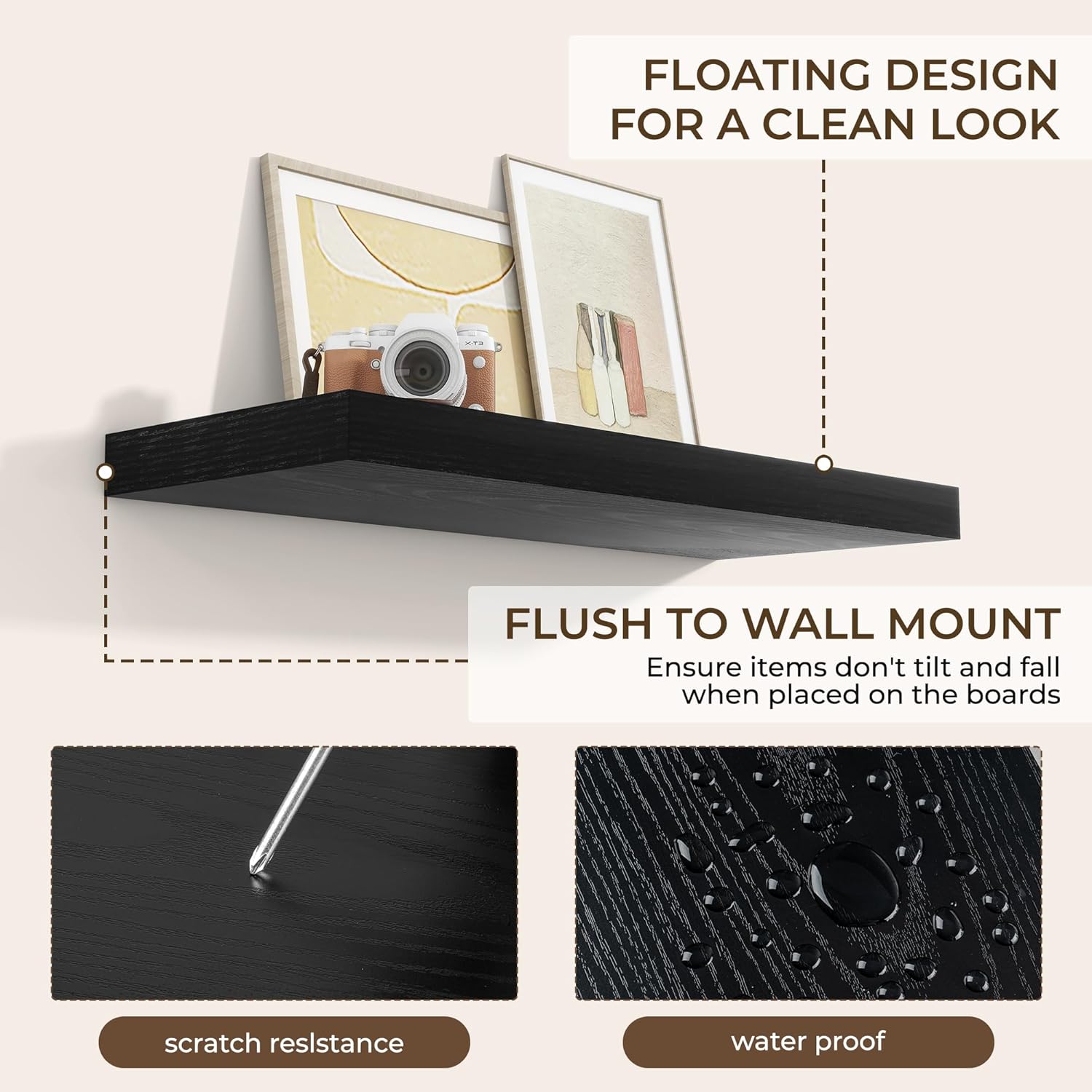 RICHFOCUS 36Inch Floating Shelves for Wall 2 Pack Shelves for Bedroom|Kitchen|Bathroom Wall Mounted Rustic Wood Floating Shelf with Invisible Brackets for Books|Storage|Decor, Black