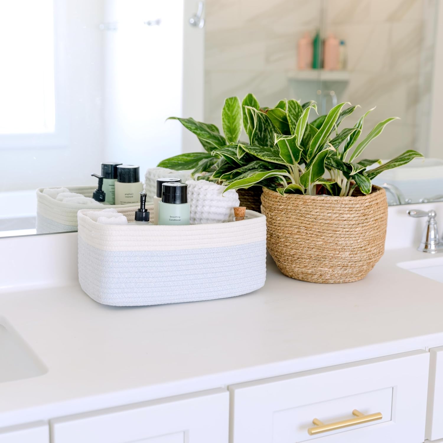 • Safe, Natural Cotton Organizer Bins: Crafted from the highest quality material in the market, our storage bins are oh-so-sturdy (and cute) and ready to take on little humans. They’re 100% safe, so you can rest easy if teething toddlers take a nibble. Reinforced Hidden Handles: Now you see ‘em, now you don’t! With completely hidden handles that blend seamlessly into the rope basket, you’ll be the Houdini of home organizing. They’re even double-stitched and reinforced for extra heavy loads!