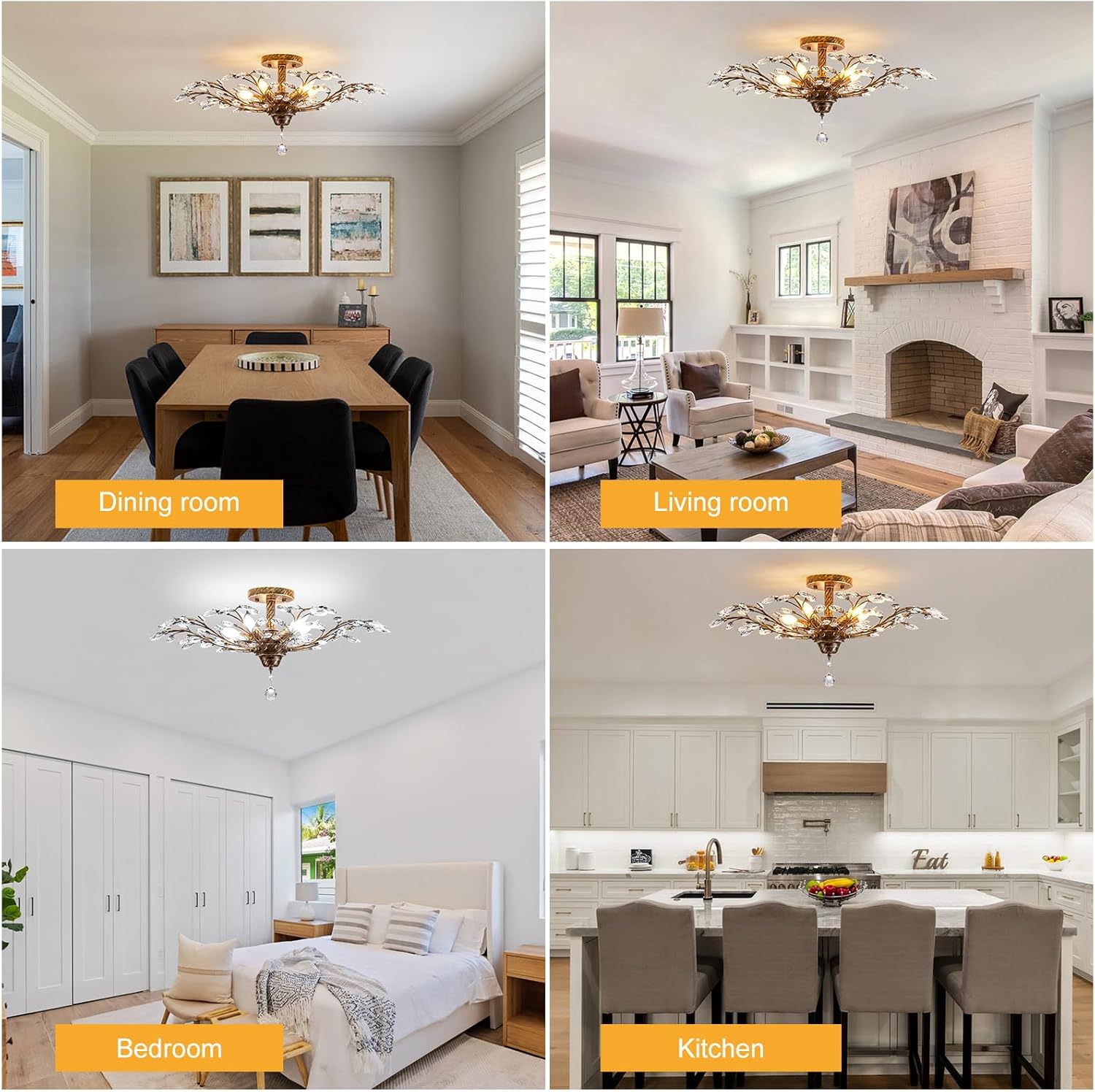 • Wide Application: This vintage crystal ceiling light fixture is suitable for various spaces in your home, such as the dining room, kitchen island, living room, bedroom, bar, entryway, etc. It can also add a touch of elegance to commercial areas like office, restaurants, galleries, exhibition rooms, and coffee shops. Its stylish design complements a range of interior styles.(Note: The 5-head ceiling light chandelier can only be used on flat ceilings.)