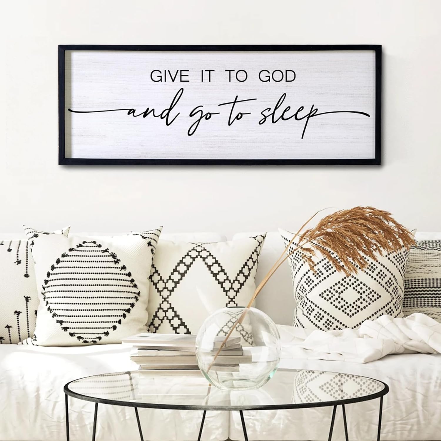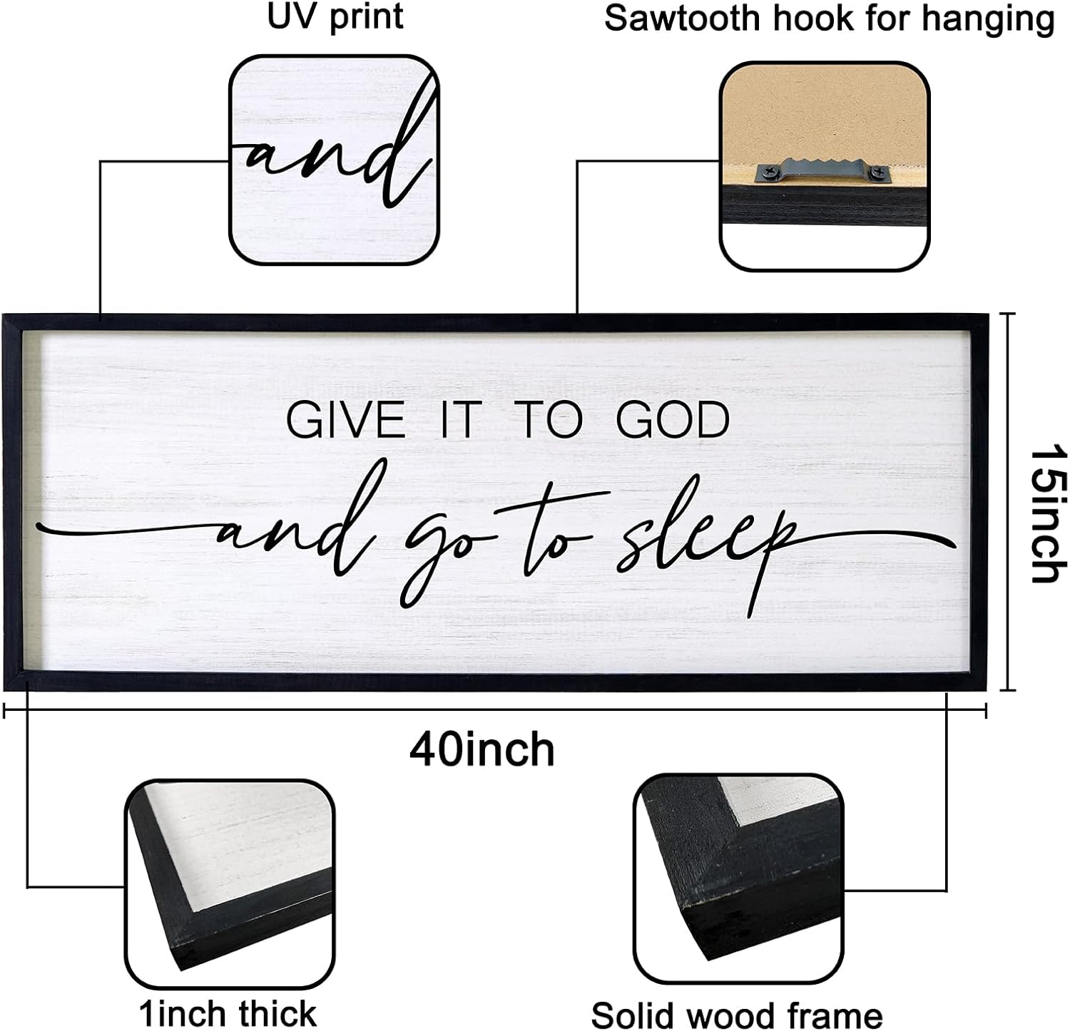 - 【High-quality Solid Wood】The aesthetic motivational give it to god and go to sleep saying wall decor above bed is handcrafted of high-quality solid wood with a distressed finish, white text design, and black solid wood frame, which is simple and durable, not easy to fade and deform, and can accompany you and your lover for a long time, witnessing the sweetness of love.