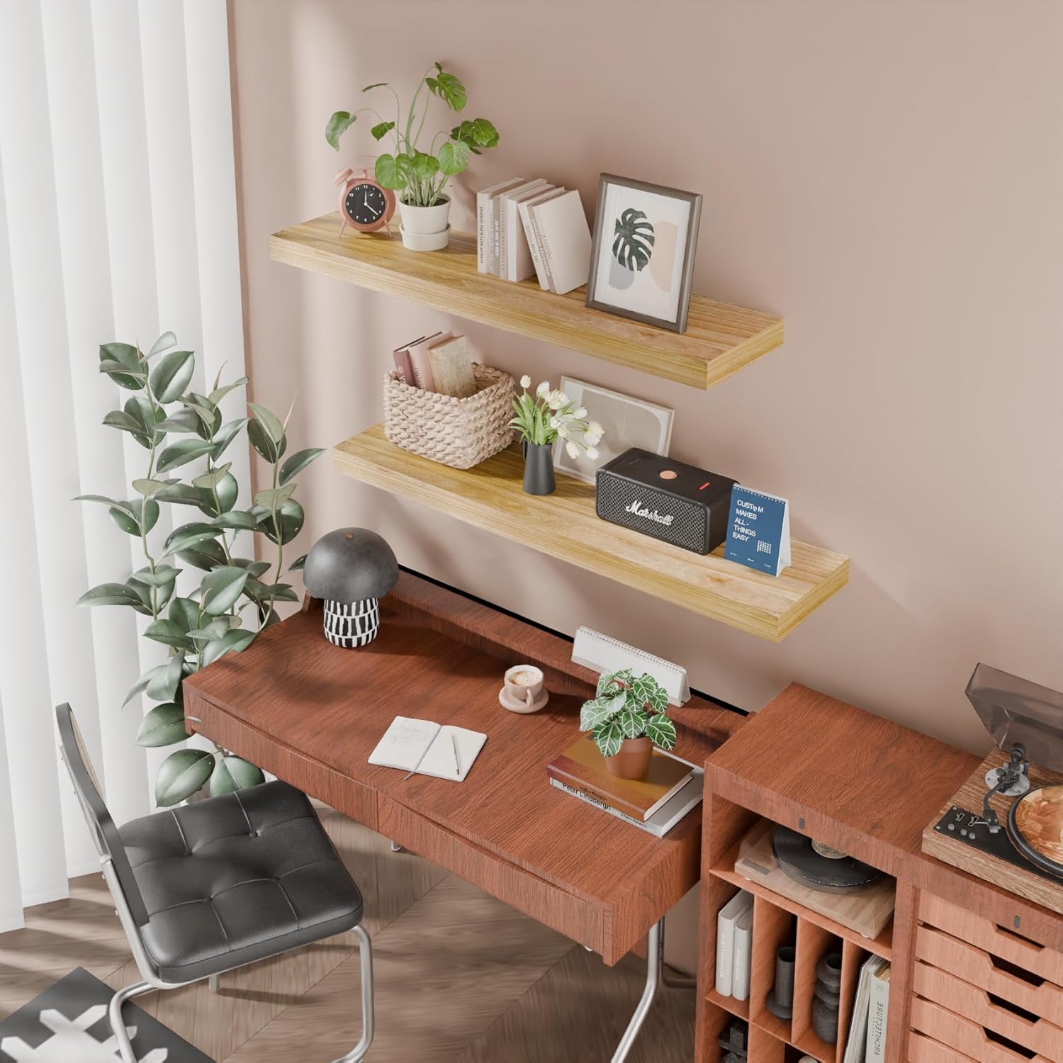IAE Floating Wall Shelves 36 inch,Bathroom Shelves Wall Mounted,Invisible Shelves Floating Kitchen Shelves,Wooden Wall Shelves with Brackets for Living Room Wall Mounted,Easy Install,Set of 2,Natural