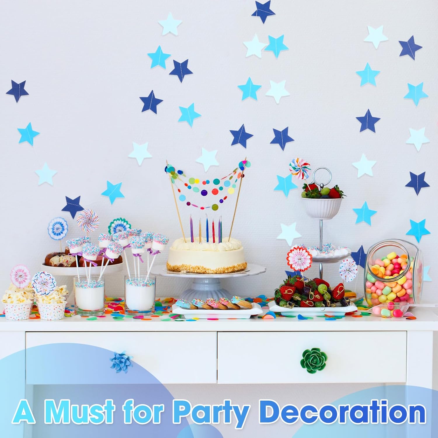 Patelai Glitter Star Garland Banner Decor 130 Feet Star Hanging Bunting Banner Twinkle Backdrop for Homecoming Classroom Wedding Birthday Halloween Christmas Party Supplies(Ocean Blue)