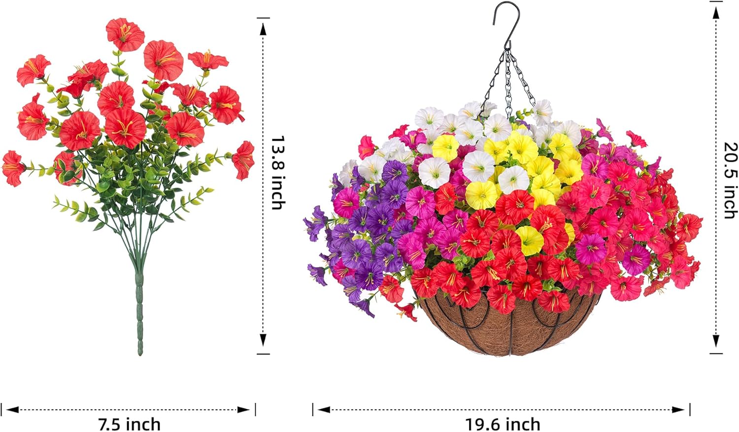 - š¢ Artificial Hanging Morning Glory Flowers Basket: Package include 12 bundles Realistic silk morning glory match with green eucalyptus leaves, 1 Hanging Basket with chain, 1 foam, 1 green hat. Enjoy vibrant blooms year-round, regardless of the season or weather conditions.