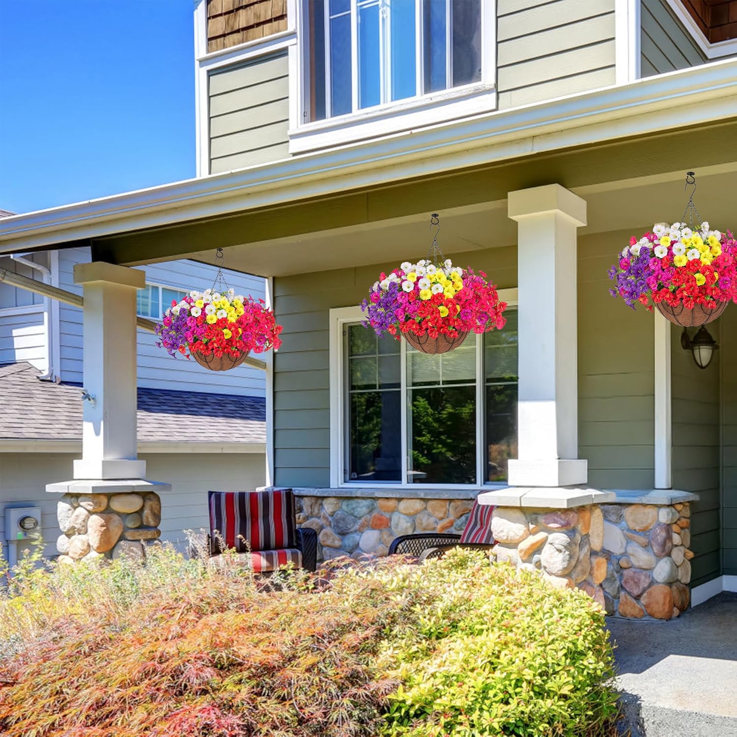 - š¢ All-Occasion Decoration: These artificial outdoor hanging flowers basket are perfect for garden, porch, patio, balcony, yard, home, front door, and outside decoration. These artificial hanging flowers with a basket provide the beauty of real flowers without the need for maintenance.