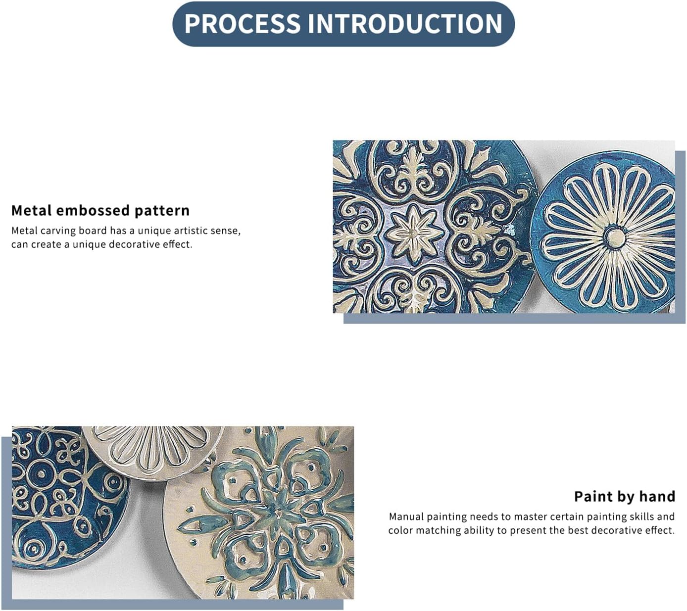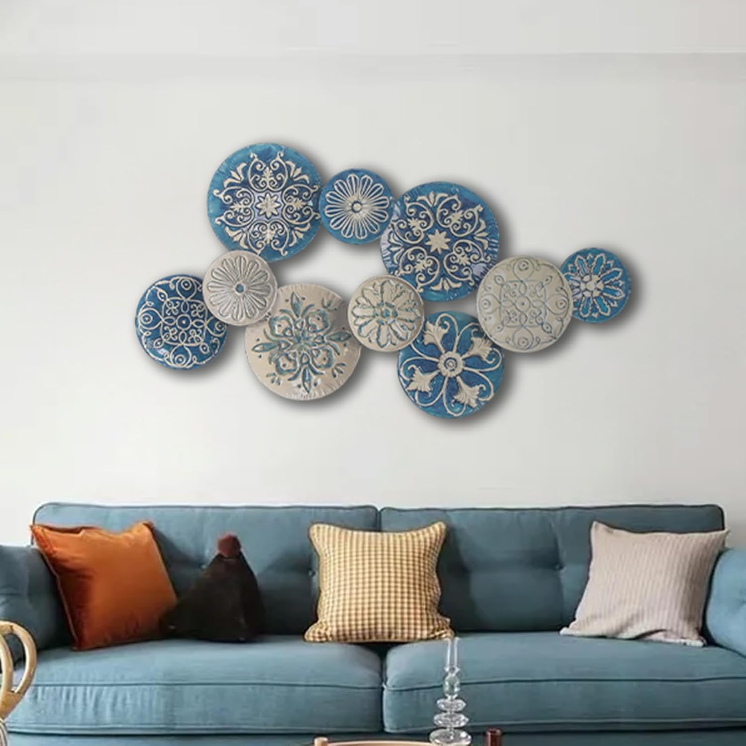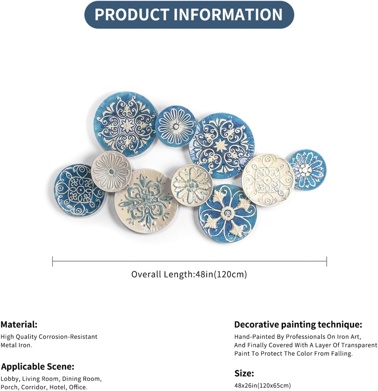 - Large Metal Wall Decor: 3D metal wall art will give you the character of vivid image on your wall. Blue and White colorful wall decoration are stacking together for a classical elegance feel