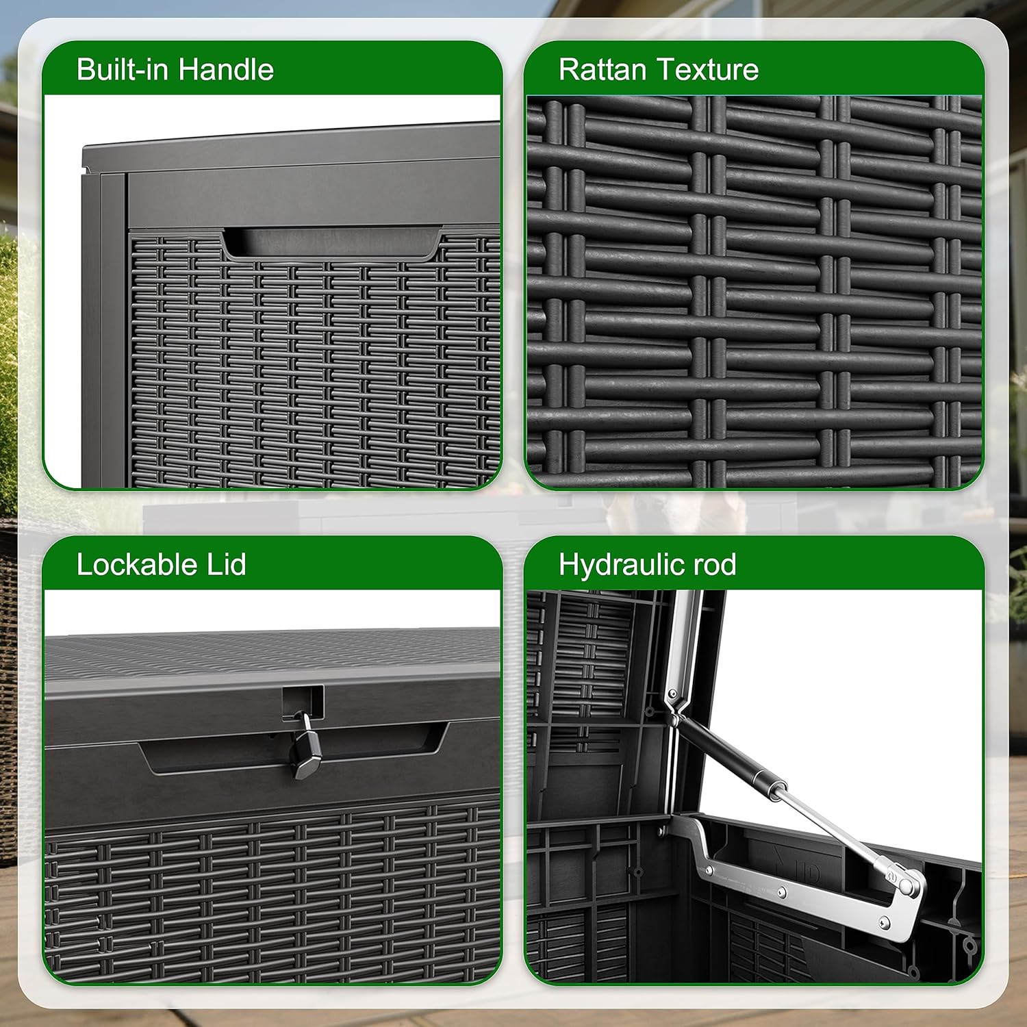 • ADAPTABLE TO VARIOUS SCENES: Whether used as an indoor laundry storage chest or an outdoor deck box container for items like outdoor cushions, garden tools, pool accessories, and this patio storage box provides abundant space. It's also versatile as a side table, yard seat, storage bench, or footrest