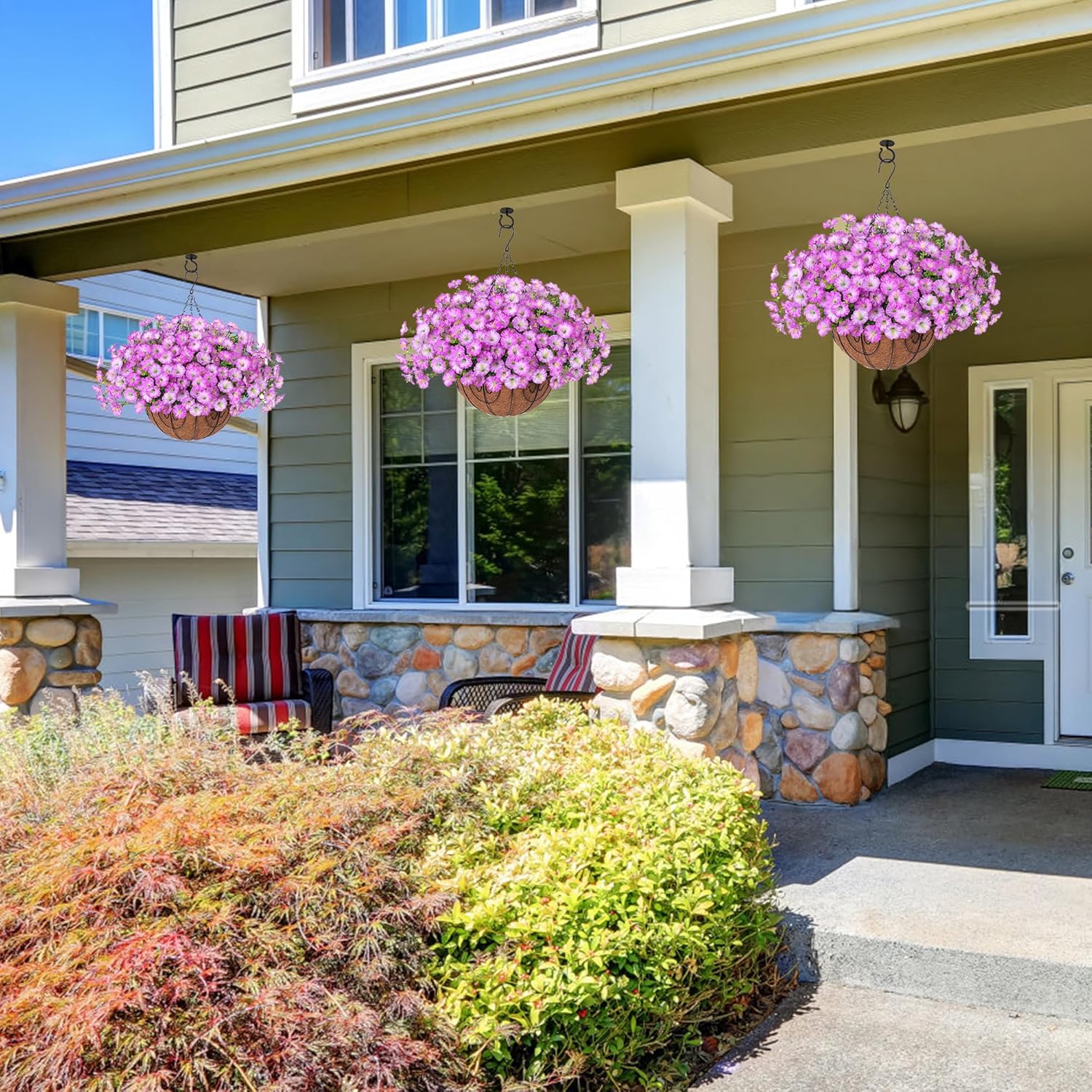 - š¢ All-Occasion Decoration: These artificial outdoor hanging flowers basket are perfect for garden, porch, patio, balcony, yard, home, front door, and outside decoration. These artificial hanging flowers with a basket provide the beauty of real flowers without the need for maintenance.