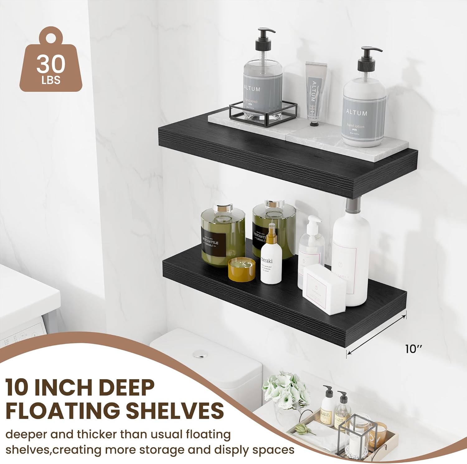 Fun Memories 24 Inch Floating Shelves Wall Mounted, 10 Inch Deep Wall Shelves, 24 x 10 Floating Shelf for Living Room Bathroom Bedroom, Black, Set of 2