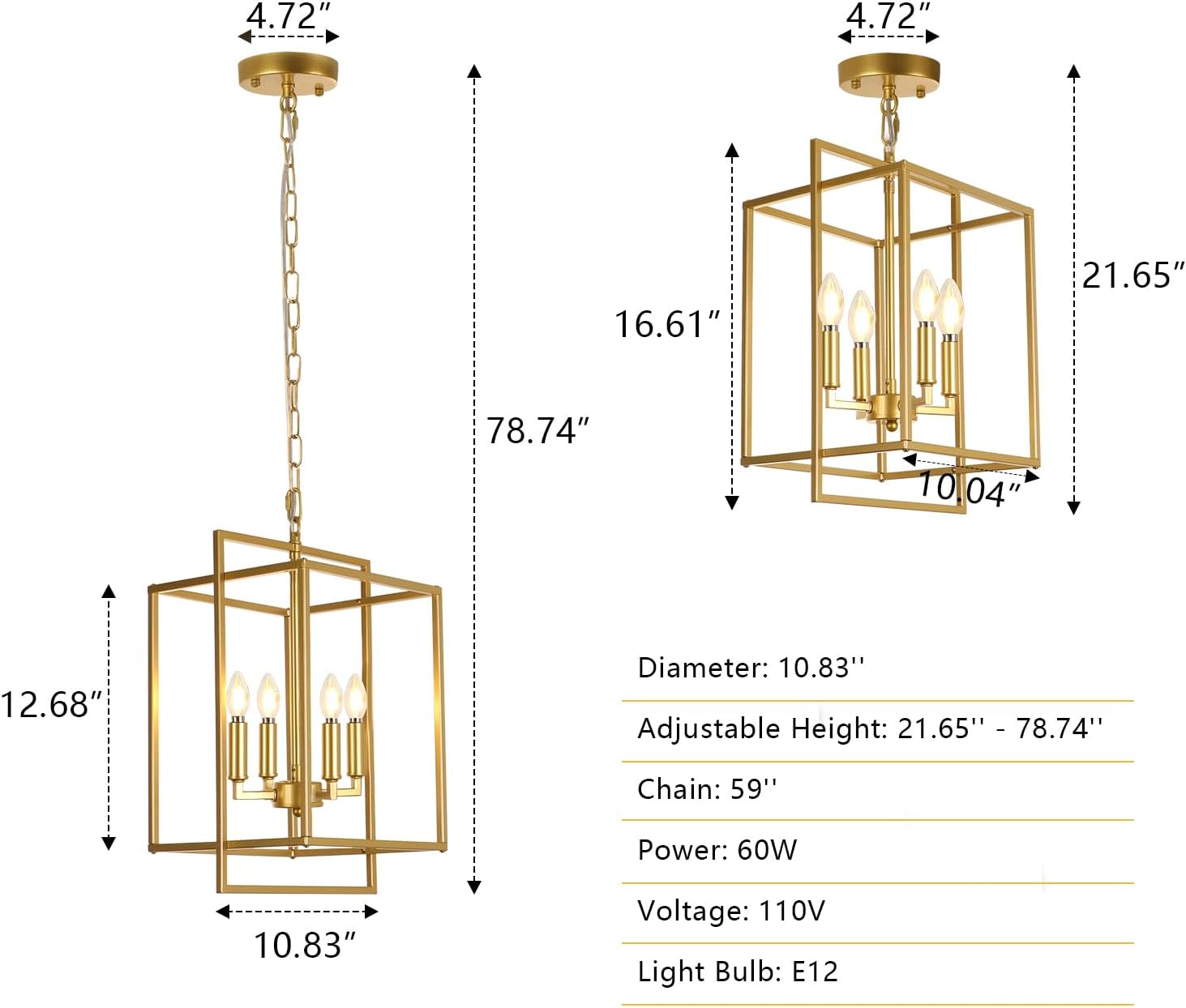 - Geometric Design: This farmhouse gold chandelier consists of a simple gold rectangular metal frame and a candle base. The appearance is clean and smooth, stylish and modern. Let the KMaiPem modern chandelier light up your life and add a touch of brilliance to your life