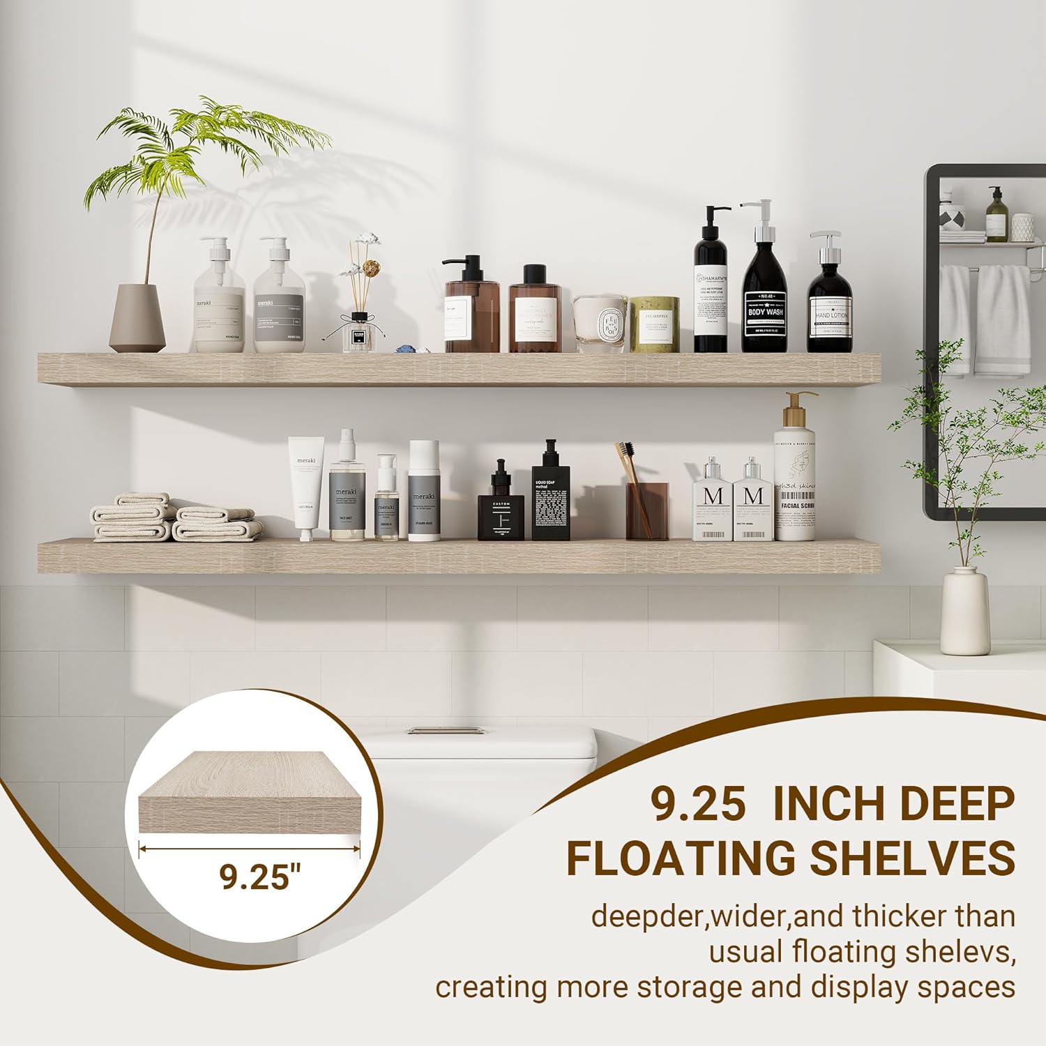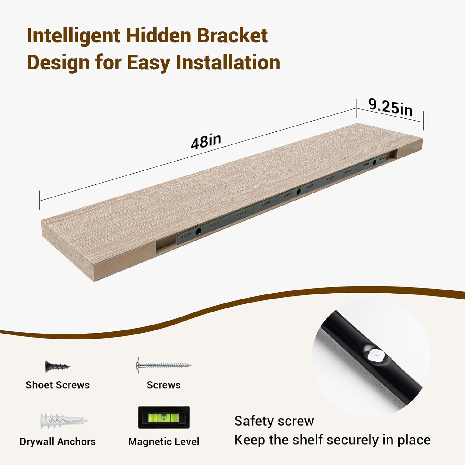 48 Inch Floating Shelves, 3D Textured Wood Grain, 48"x9.25"x1.5" Inch Deep Floating Shelves for Wall, Wooden Shelves for Bathroom, Bedroom, Living Room, Vintage White Oak