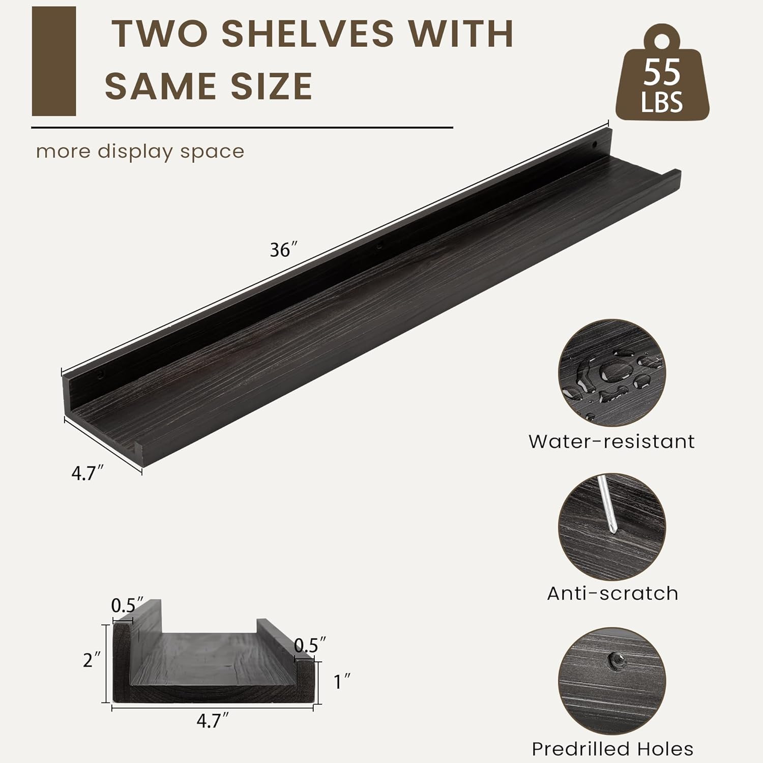 • Quick and Easy Installation: With pre-drilled holes, necessary hardware, and easy-to-follow instructions, our picture ledge shelves are a breeze to install. Each set even comes with a mini level for perfect alignment. Put them up in minutes and start decorating right away!