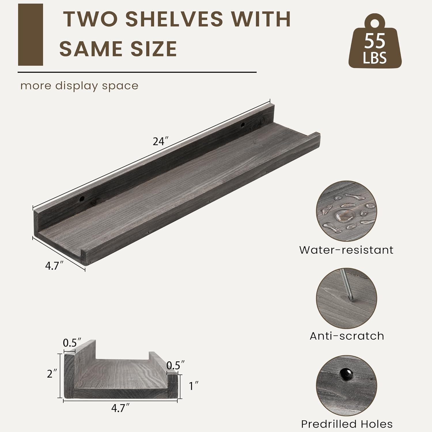 Floating Shelves for Wall, Picture Ledge Shelf 24 Inch Solid Wood Set of 2, Rustic Wall Shelves with Lip, Kids Bookshelf, Photo & Picture Live Edge Floating Shelves for Bedroom, Living Room, Kitchen