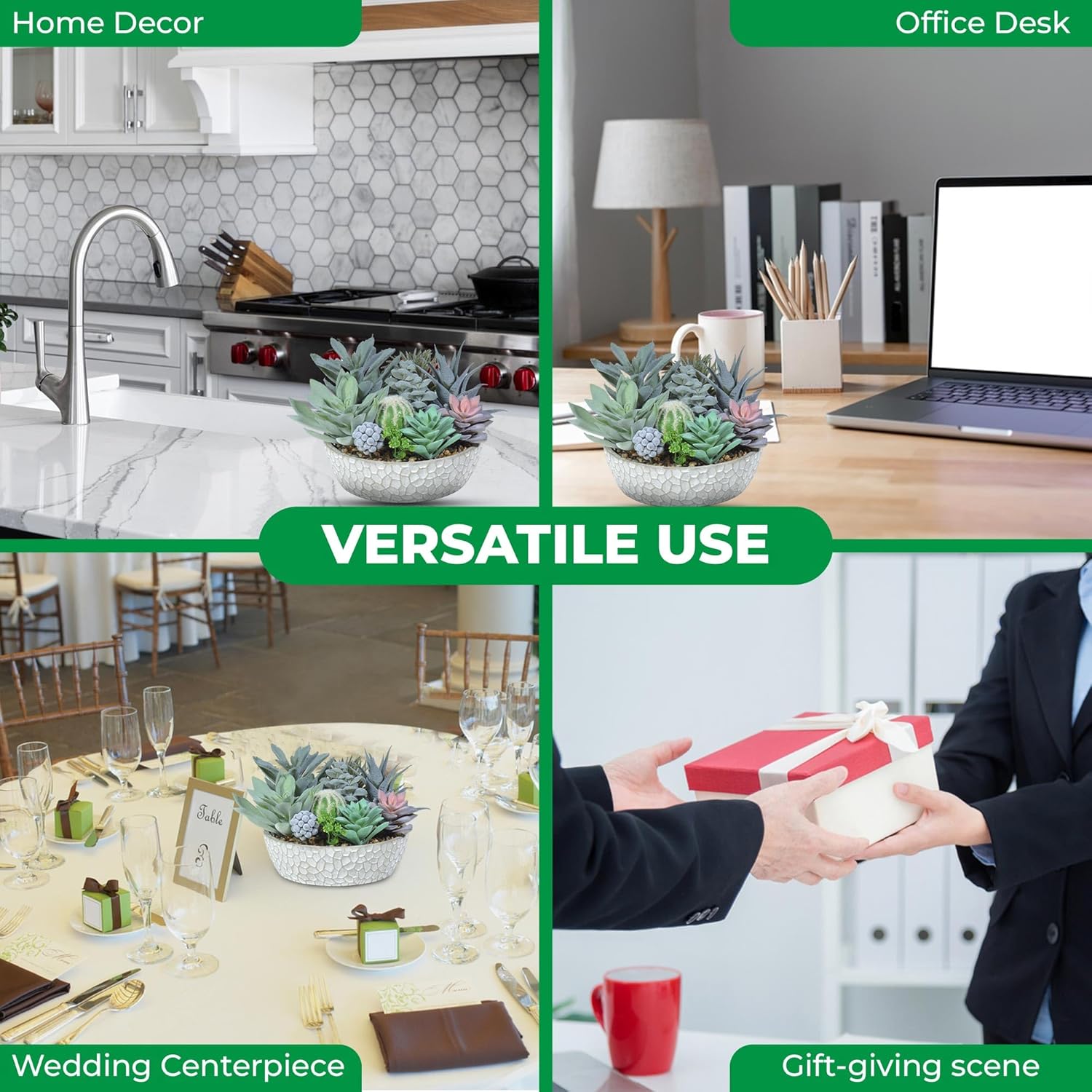 - [Uses of Potted Plants Artificial Decor] These artificial potted succulents, cacti, and aloe vera plants are versatile and can be used in a variety of settings. Ideal for home decor, office decoration, or wedding table centerpieces. They're also perfect for bedrooms, living rooms, kitchens, or as a gift for succulent lovers.