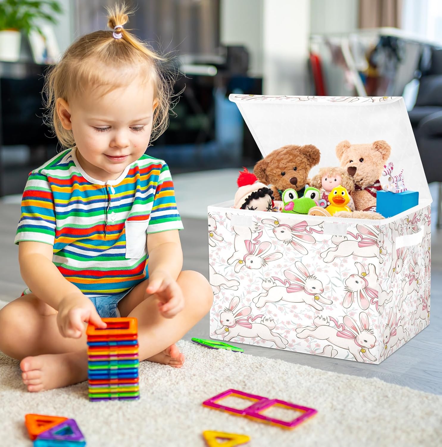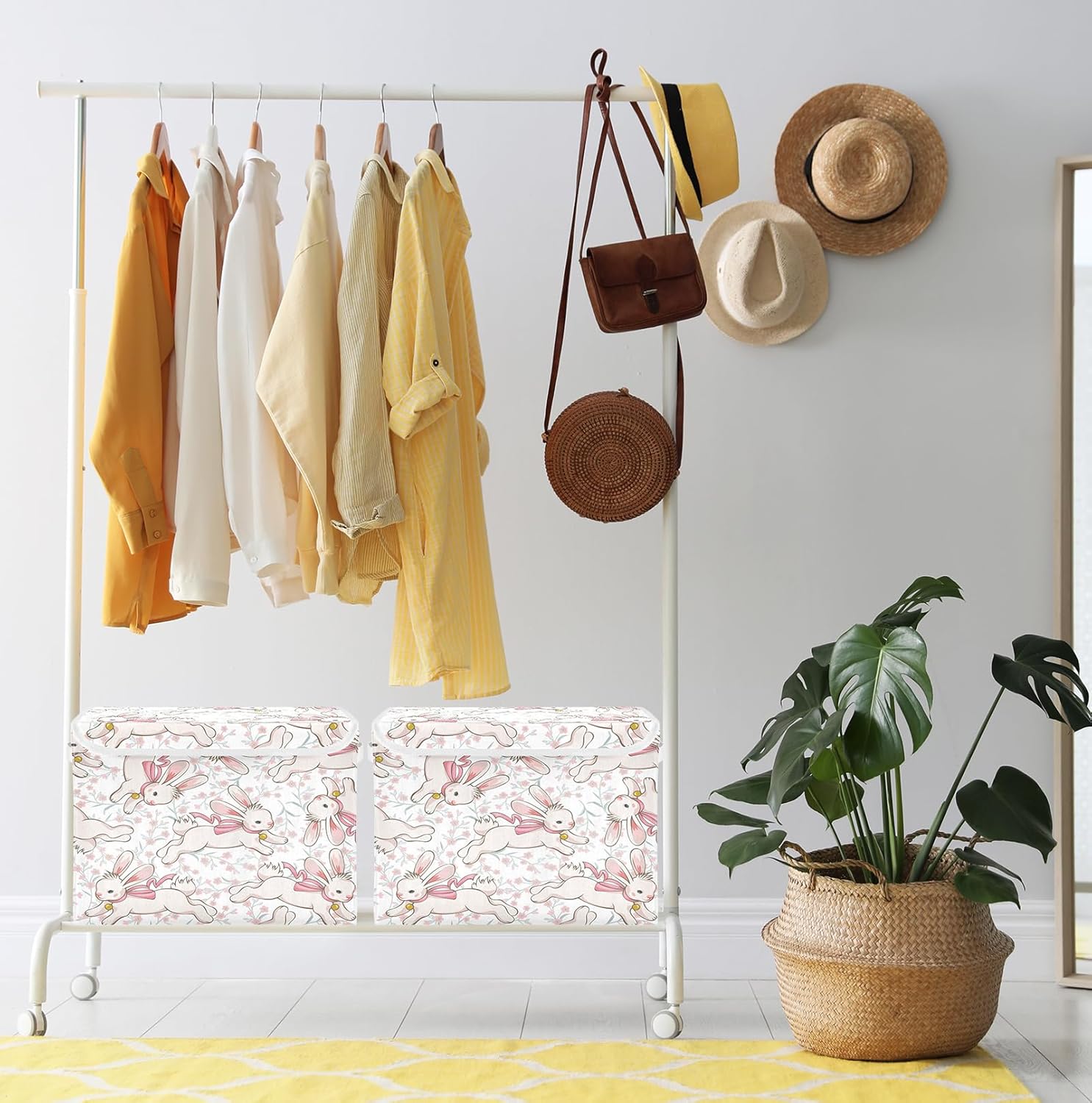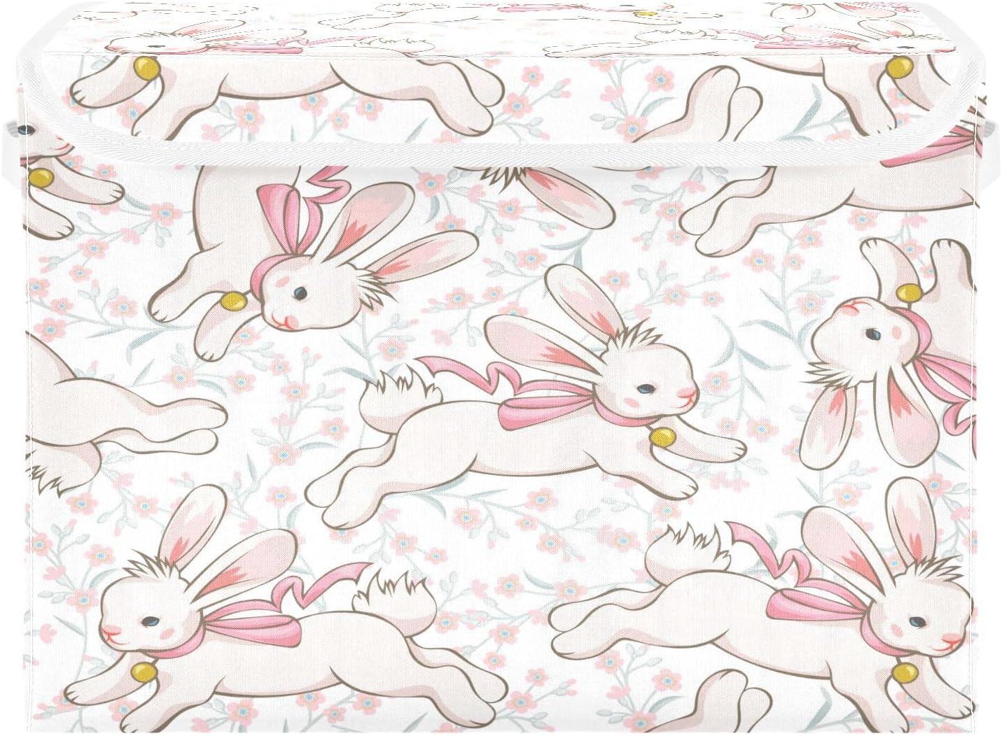 susiyo Cute Running Bunny fabric storage baskets with lids,Collapsible Storage Boxes,Foldable storage boxes with handles for Home,Office,Closet Organization