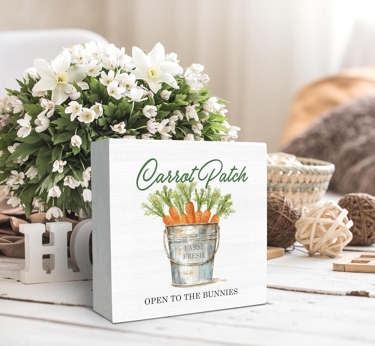 SRADMO Easter Sign, Carrot Patch Easter Wood Box Sign Desk Decor, Easter Carrot Decorations, Farmhouse Easter Theme Wooden Block Box Sign Decoration for Home Office Shelf Table Decor