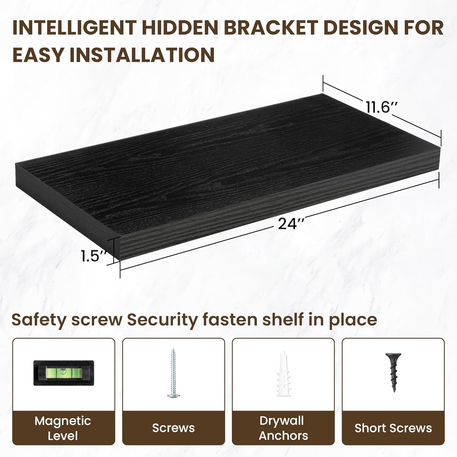 - ăEasy InstallationăDesigned with user convenience in mind, these shelves come with all necessary mounting hardware and clear instructions. You can have them up and ready to use in less than 5 minutes. Plus, our customer service is always ready to assist with any queries or concerns, ensuring a hassle-free experience