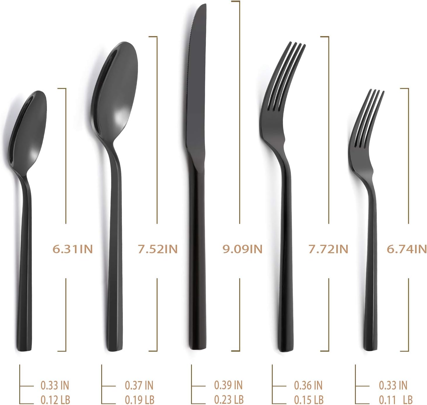 Hand Forged Stainless Steel Flatware Set Silverware Set Cutlery Set Hexagon Handle Black Mirror Finished 20 Pieces Service for 4