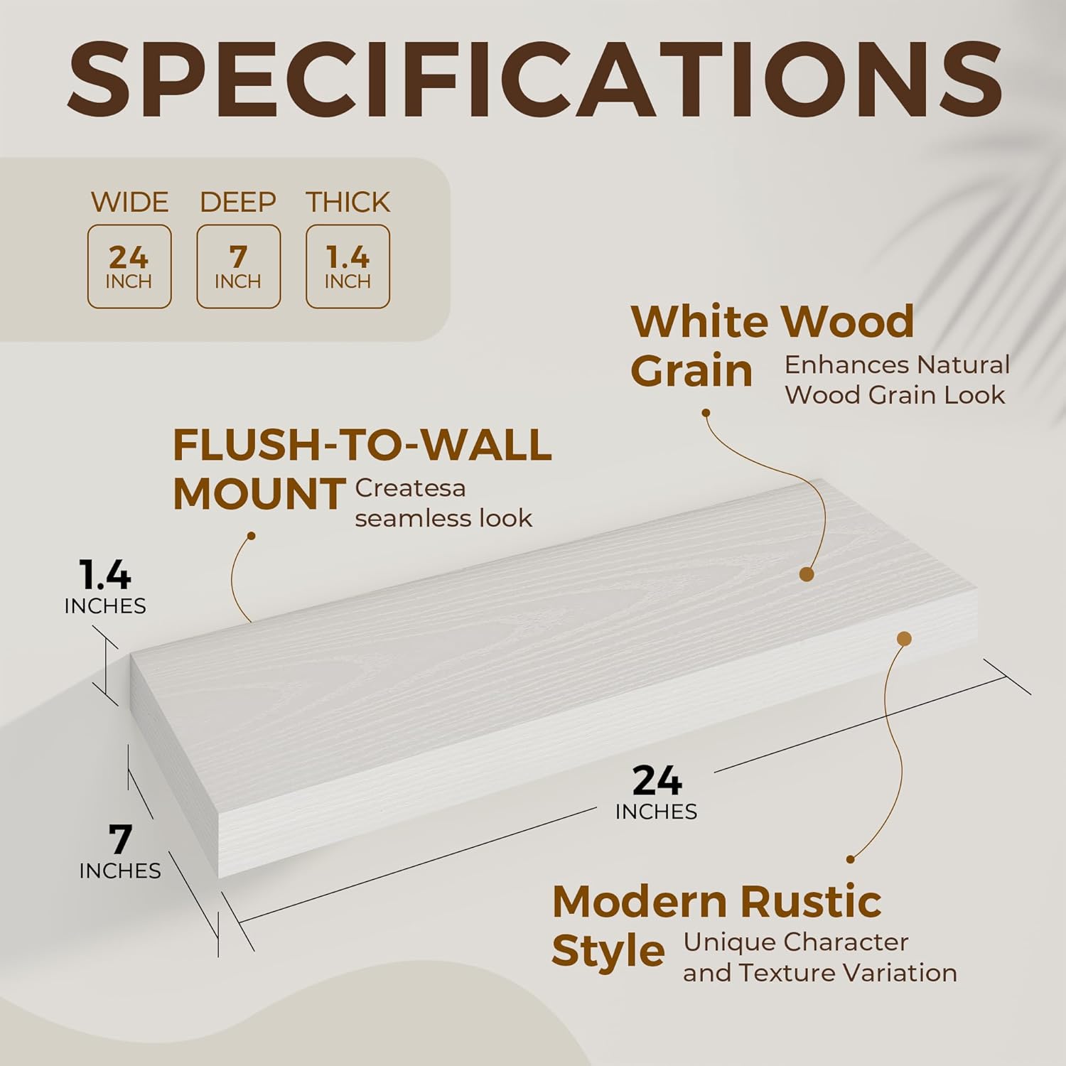 - Modern and rustic style: Our 6.7-inch deep floating shelves blend modern rustic with practical functionality, offering a seamless solution to elevate any room. Crafted to complement a wide variety of wall types and interior styles, these shelves are perfect for displaying treasured décor or optimizing storage in your home.