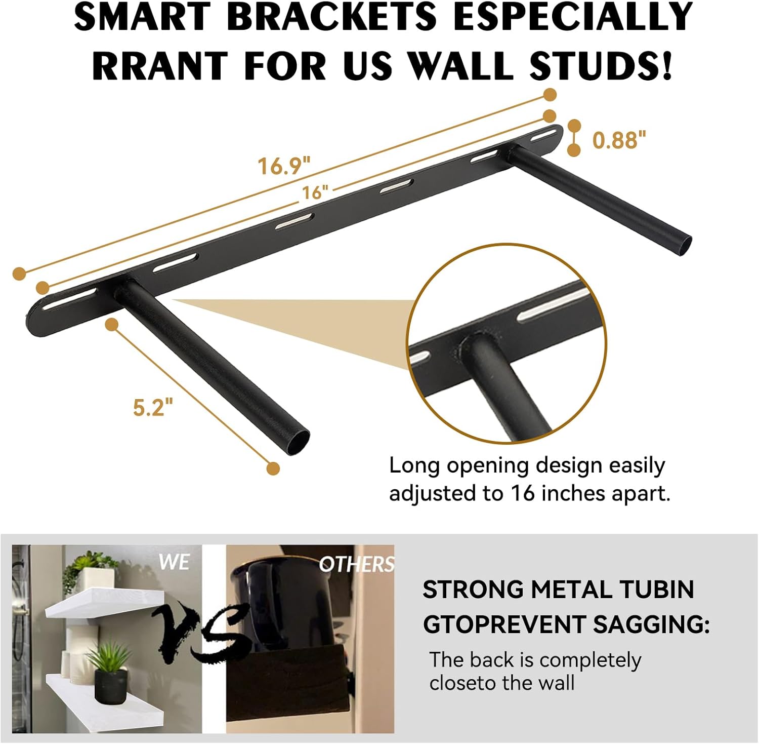 - EASY TO INSTALL: These floating shelves come with stainless steel galvanized invisible brackets, toggle bolts for drywall, and simple instructions to help you install them. These wall shelves are easy to assemble, requiring only two boards and the necessary screws and hardware. We also provide detailed instructions for quick and easy assembly