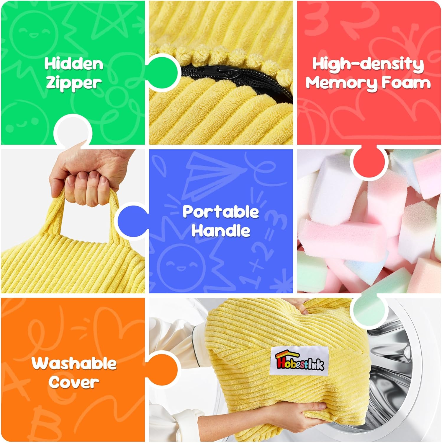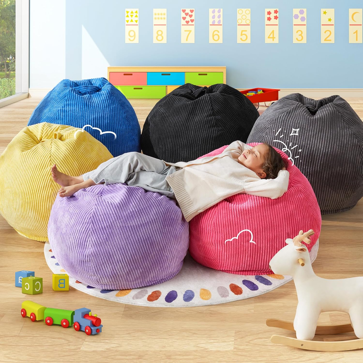 - Creative Design: Hobestluk bean bag chairs look like a tear drop with a wide base that narrows towards the top. There are six colors for you to choose in this design. Plus, our bean bag is made of comfy textured corduroy fabric and high-density memoy foam, which feels like you're sinking into a cloud.