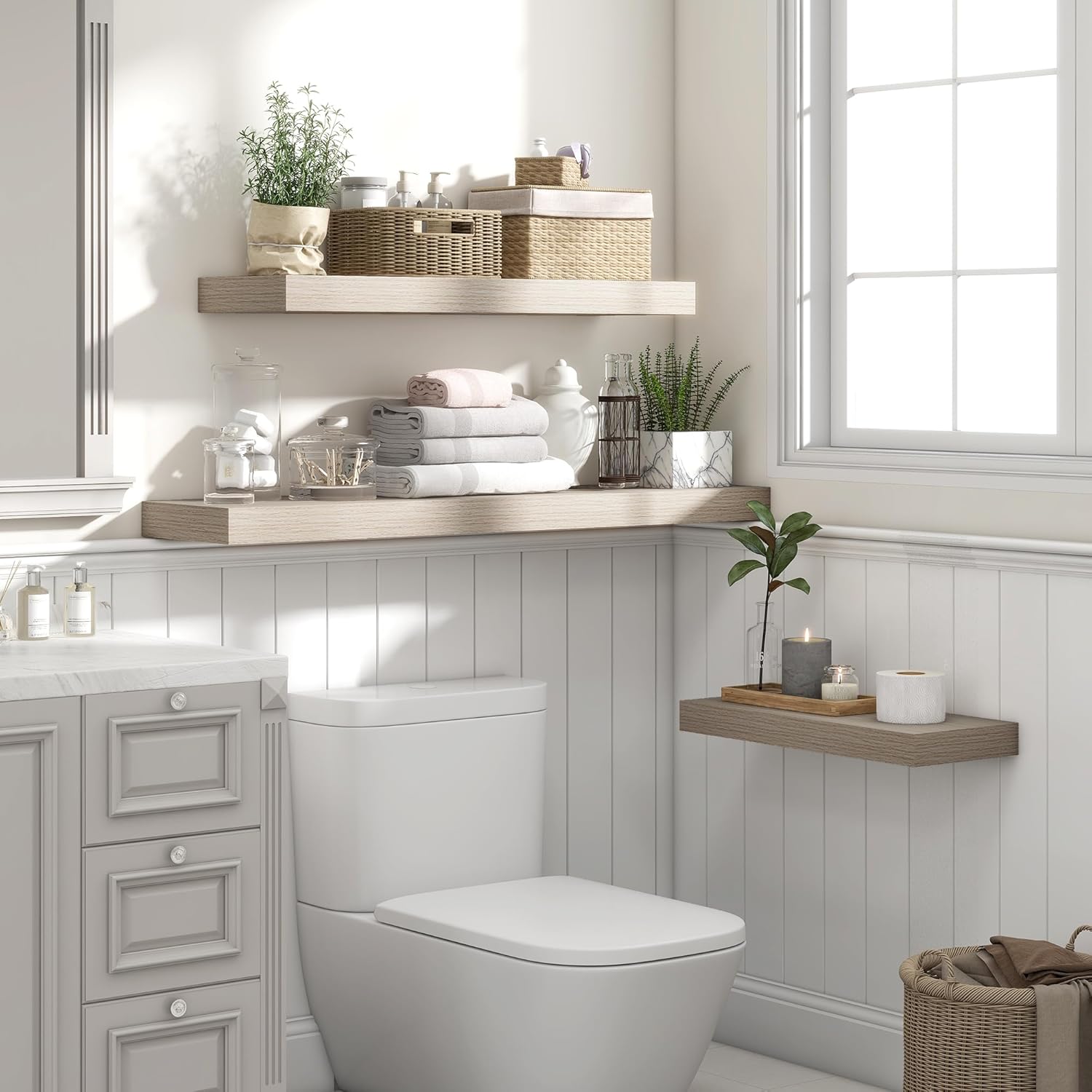 - 【Versatile】Our floating shelves are available in multiple different colors, so our invisible wall-mounted floating shelves are suitable for a variety of home environments, including bathrooms, living rooms, bedrooms, study rooms, and kitchens. It can be used as a storage space for small items and decorations in the bedroom, adding a touch of simplicity and warmth to the space.