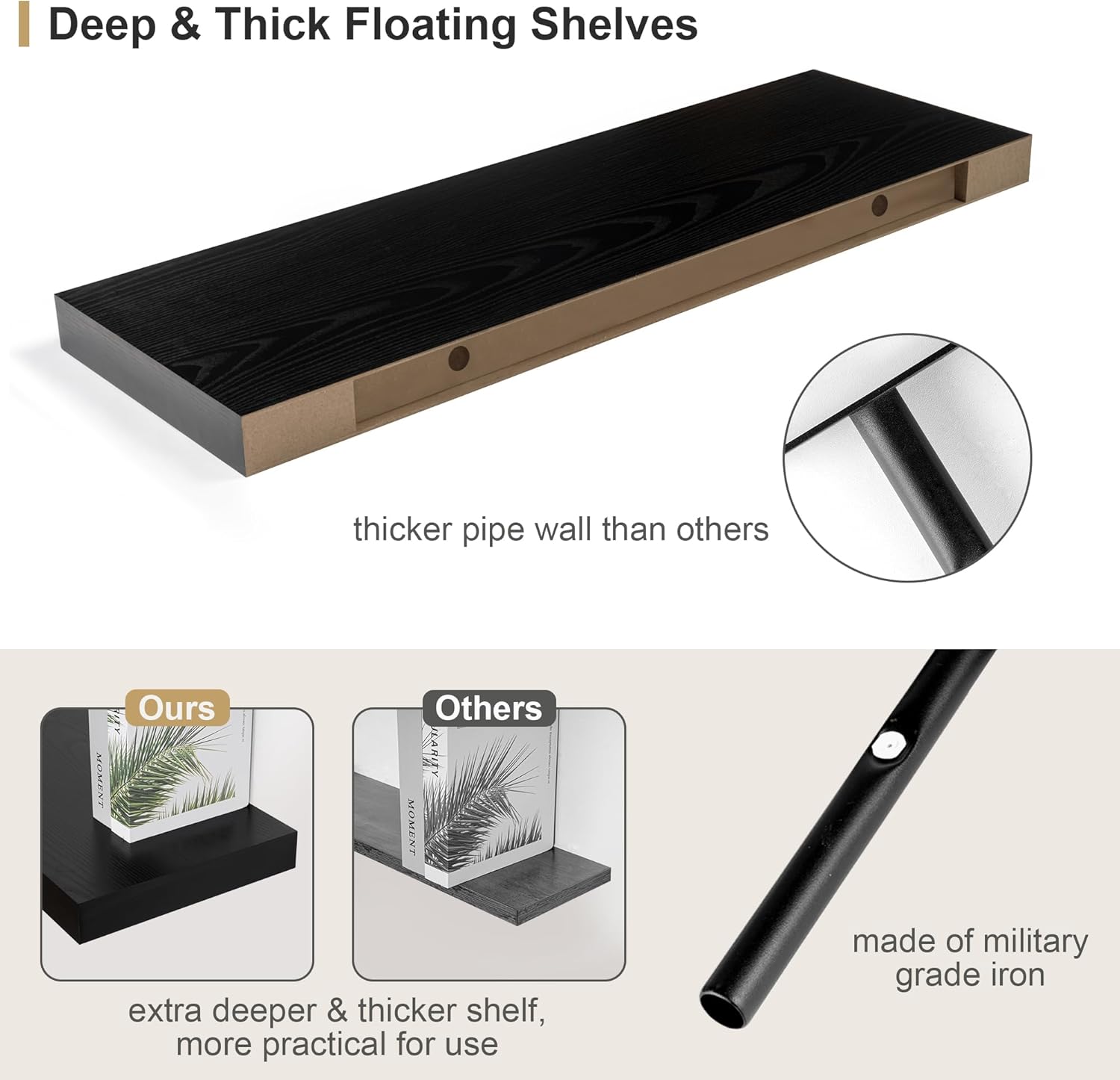 Heimlove 12 Inch Deep Floating Shelves, 55 x 12 inch Extra Long Floating Shelves for Wall, Large Display Shelf & Storage Shelf for Living Room Bedroom Kitchen Home Office, Set of 1, Black