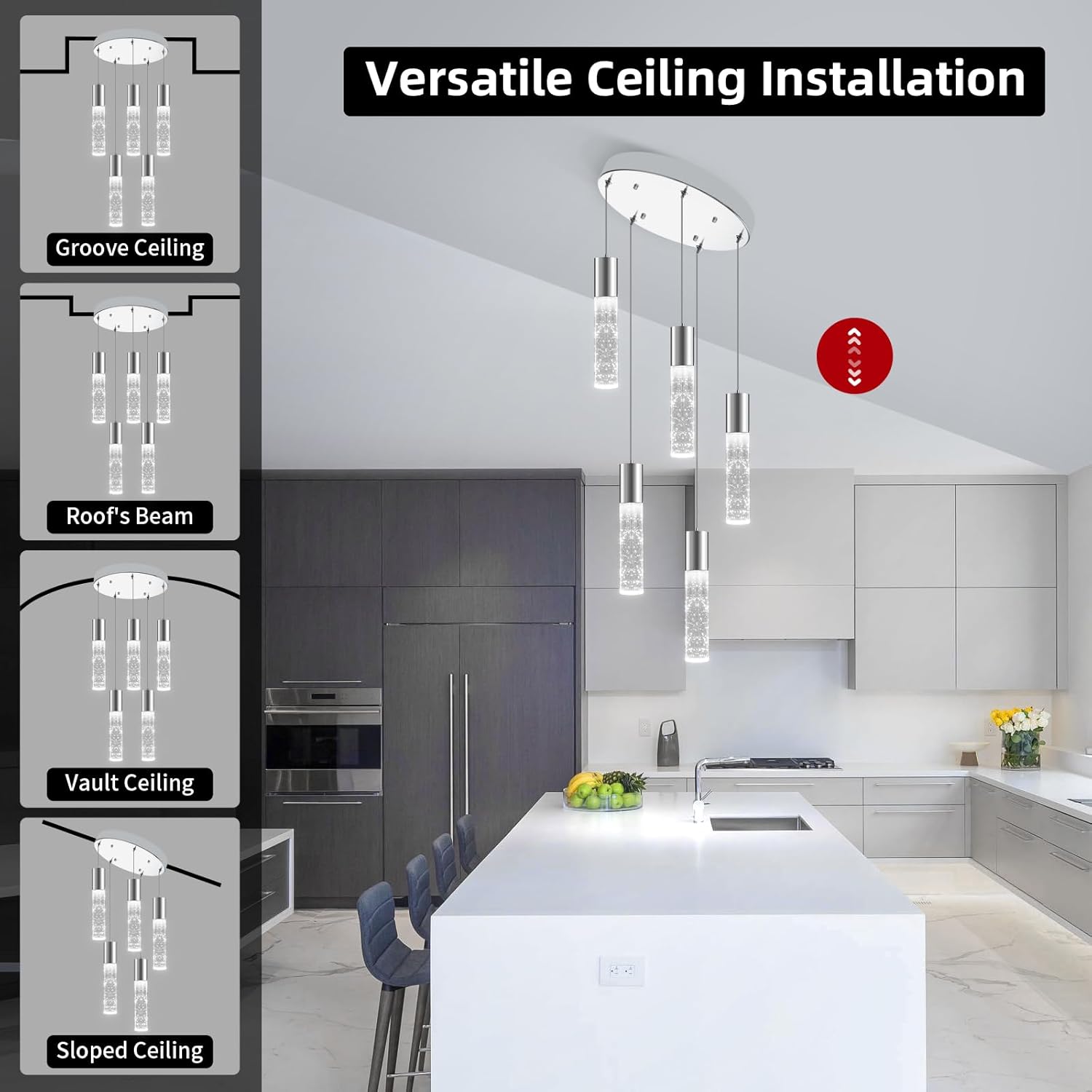 OKELI Smart Dimmable LED 5-Light Pendant Light for Kitchen Island, 18W 1350LM Modern Bubble Crystal Island Light Fixture with TUYA App & Voice Control, Adjustable 3000K-6000K, Electro-Chrome