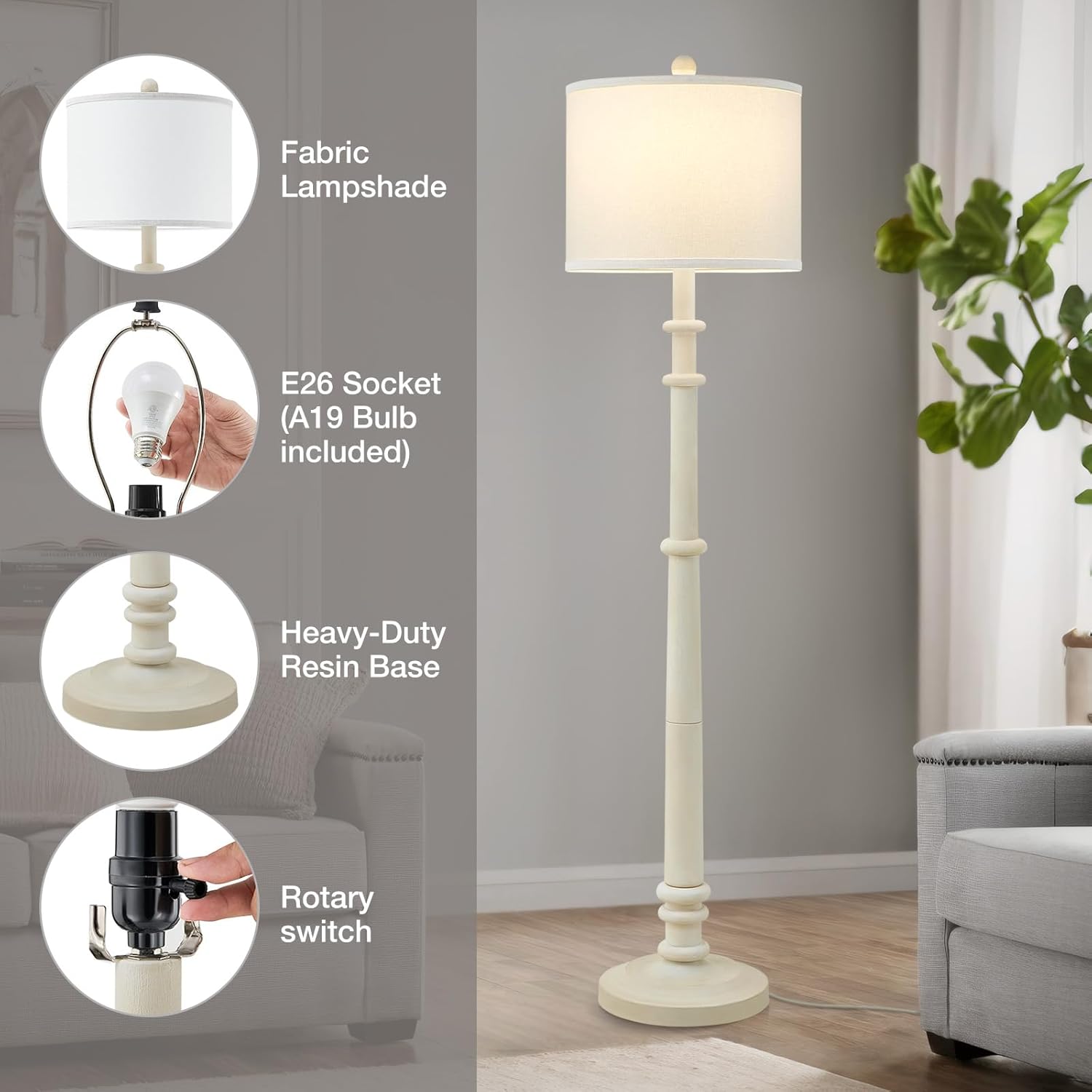 Floor Lamps for Living Room - 60" Resin Farmhouse Floor Lamp with 3 Color Temperatures - Vintage Standing Lamp Reading Light with Linen Shade Retro Tall Lamp for Bedroom Office, Almond White