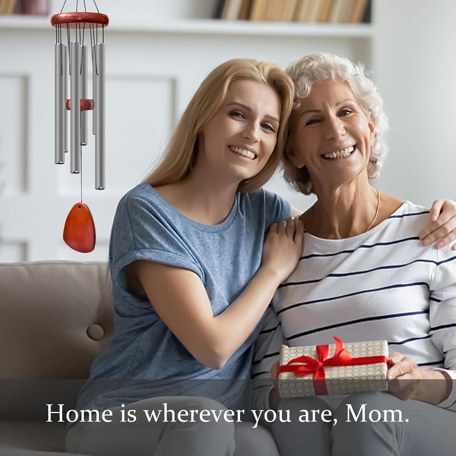28" Wind Chime for Mothers Day, Decorative Wind Chimes for Outside, Memorial Windchimes Remembrance Gift for Women Mom Grandma, Metal Wind Chimes Outdoor Decor for Garden Patio Zen(Grey)